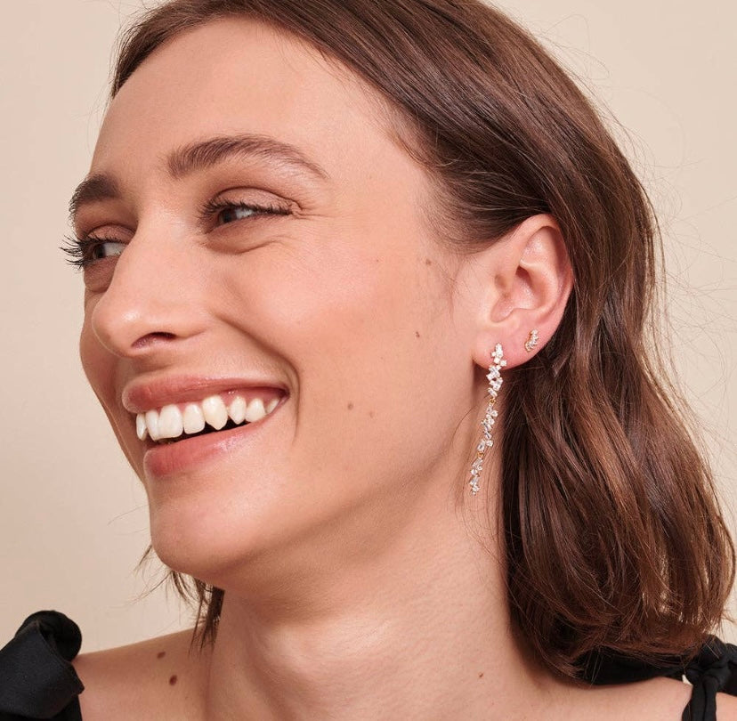 The Peta Studs have 5 marquise stones fanned out. A pretty style that is perfect to layer with your favorite earrings.