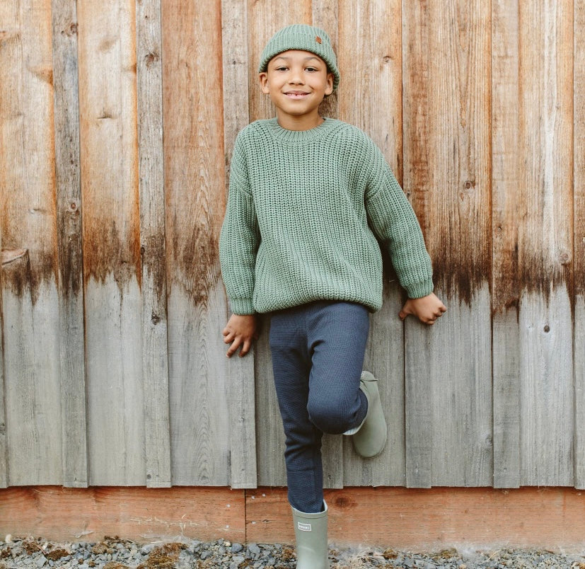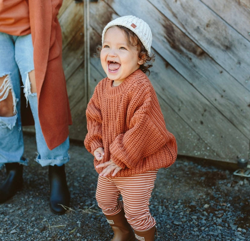 Meet the chunky knit sweater. Made of 100% organic cotton knit. Wear it oversized or size down for a more fitted look. This will be your babe's go to sweater all season long.