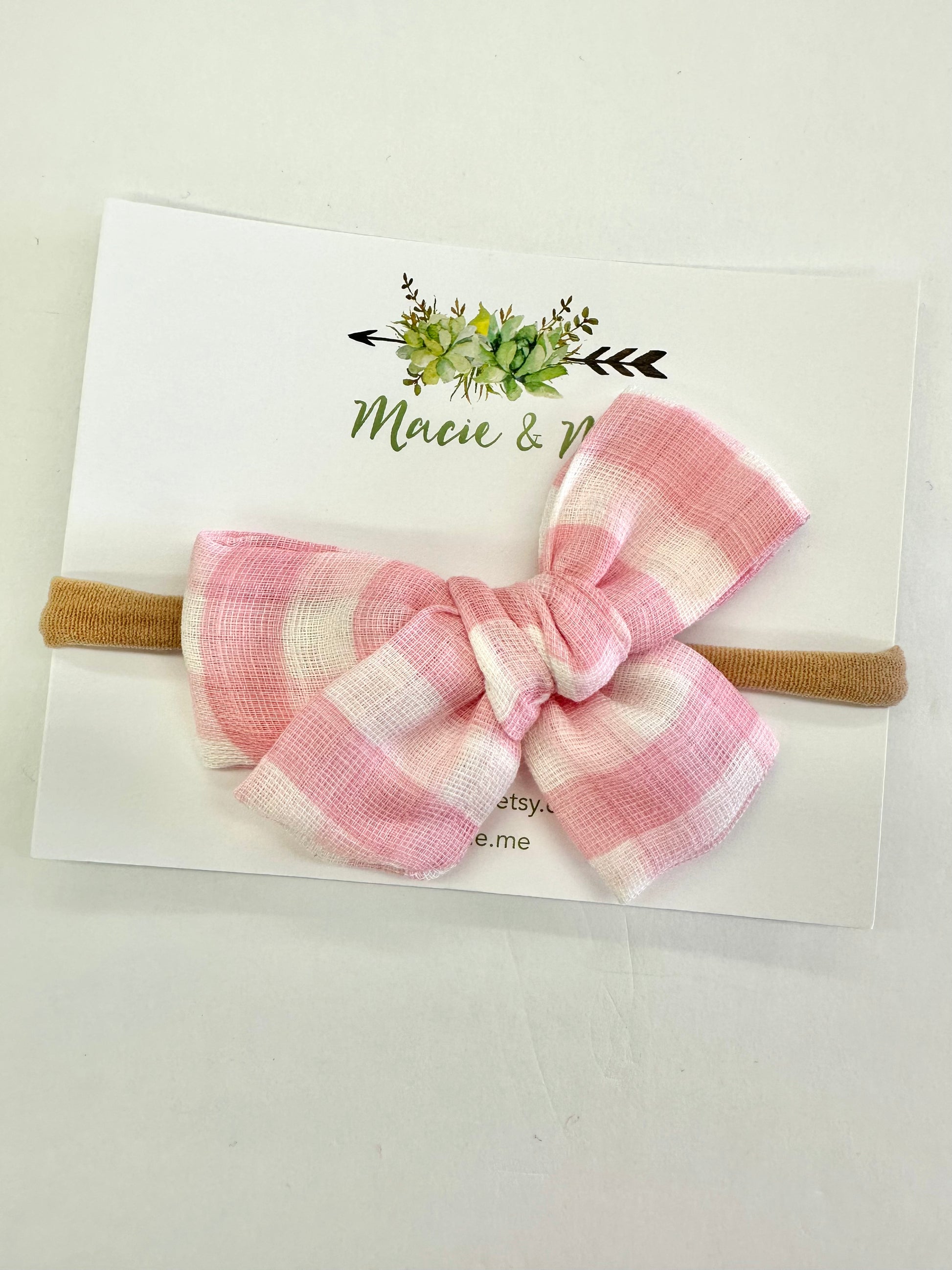 Pink Gingham Bow Headband