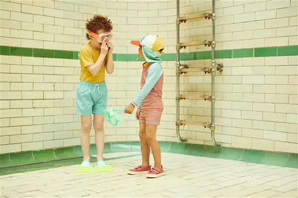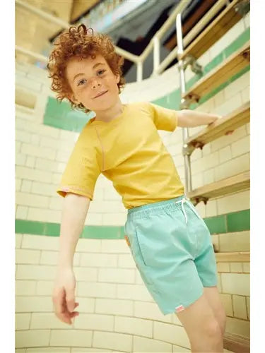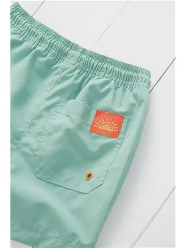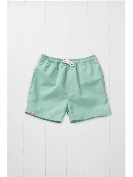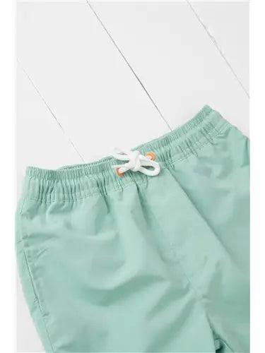 Our new pistachio green swim shorts are the perfect additon to summer wardrobes. Wear them during water-based activities or as shorts on family adventures. Designed in a unisex fit for all kids. Made in a special eco-friendly fabric that uses recycled plastic bottles. With UPF50+ protection, this microfibre fabric is quick-drying and supersoft with a brushed feel. These kids swimming shorts have an inner mesh lining and a drawcord at the waist for comfort. The side pockets and back pocket are great for little ones to collect their beach treasures.