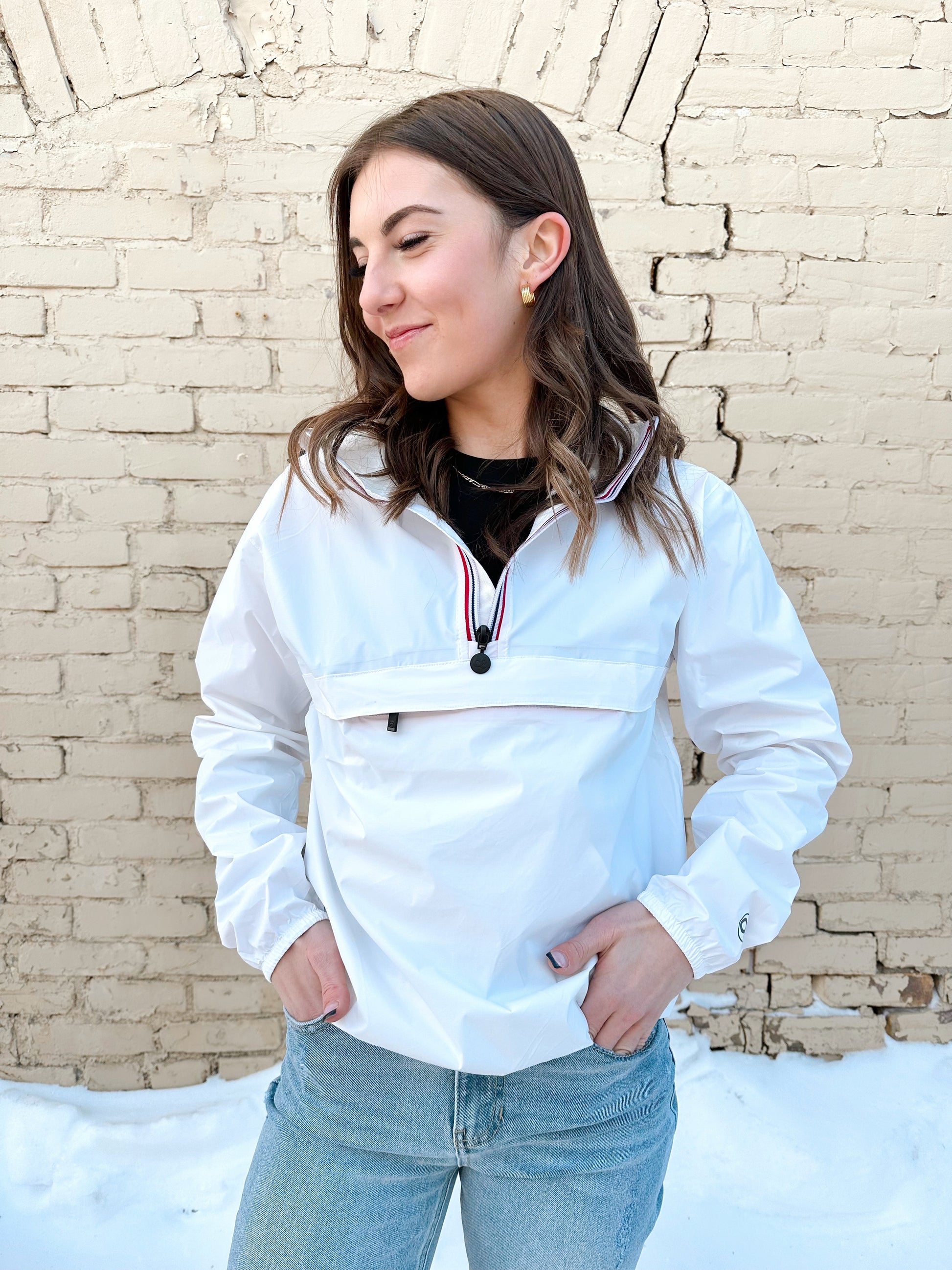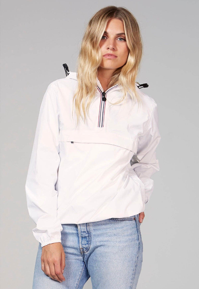 A true classic in rainwear silhouettes, our quarter-zip rain jacket is waterproof and breathable, with heat-sealed seams and packs into its own center pocket with a handy hook clip that easily attaches to a bag, backpack, belt loop, you name it… so you can bring it along wherever you go!