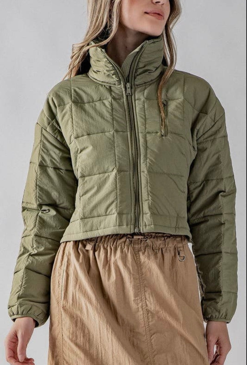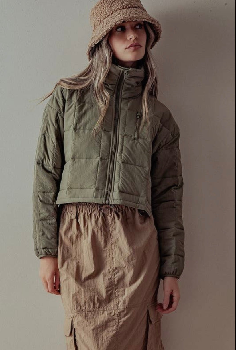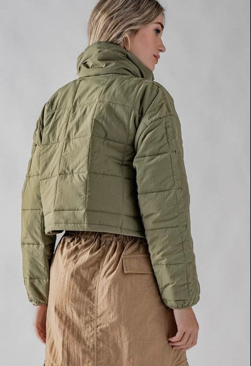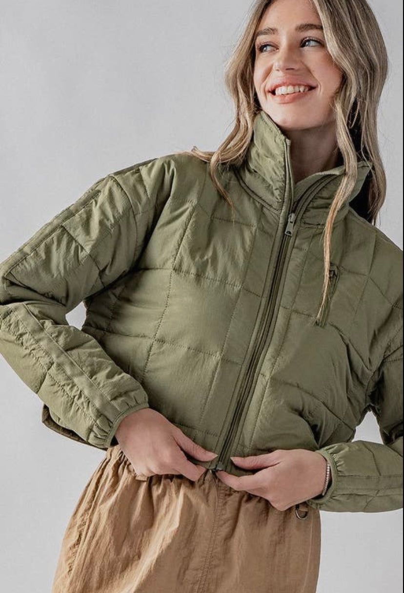 Ultra lightweight quilted water resistant packable puffer cropped jacket