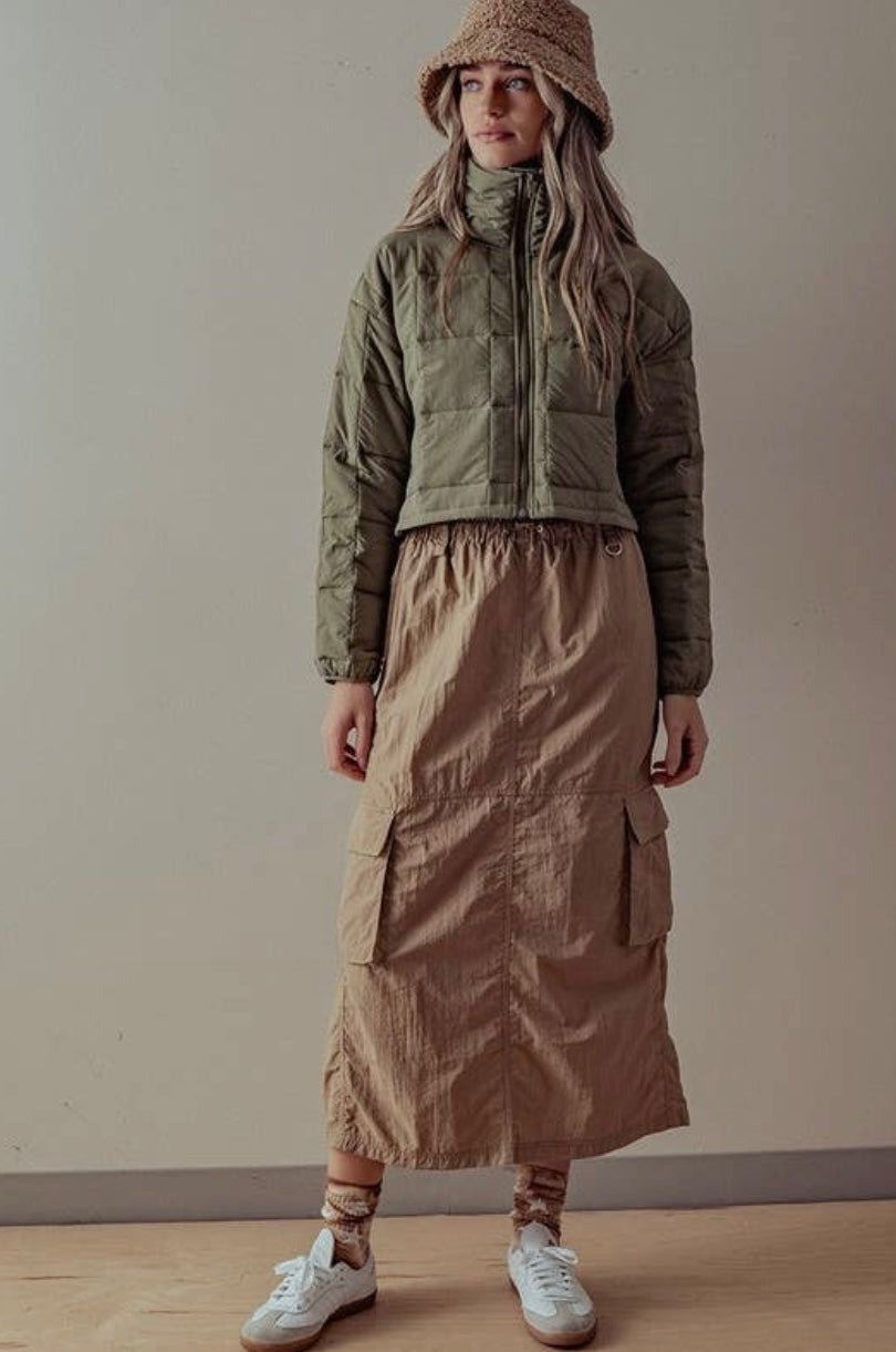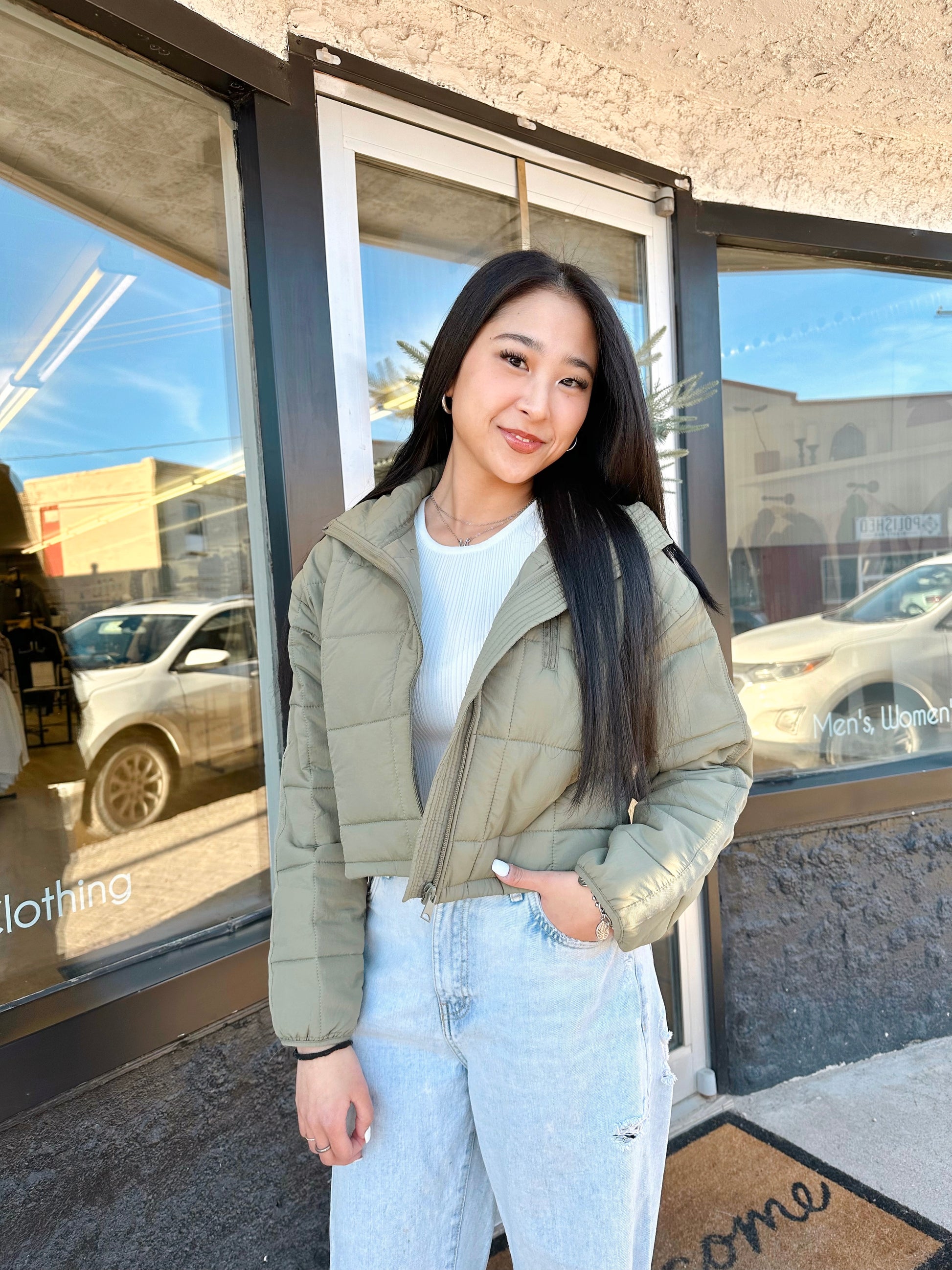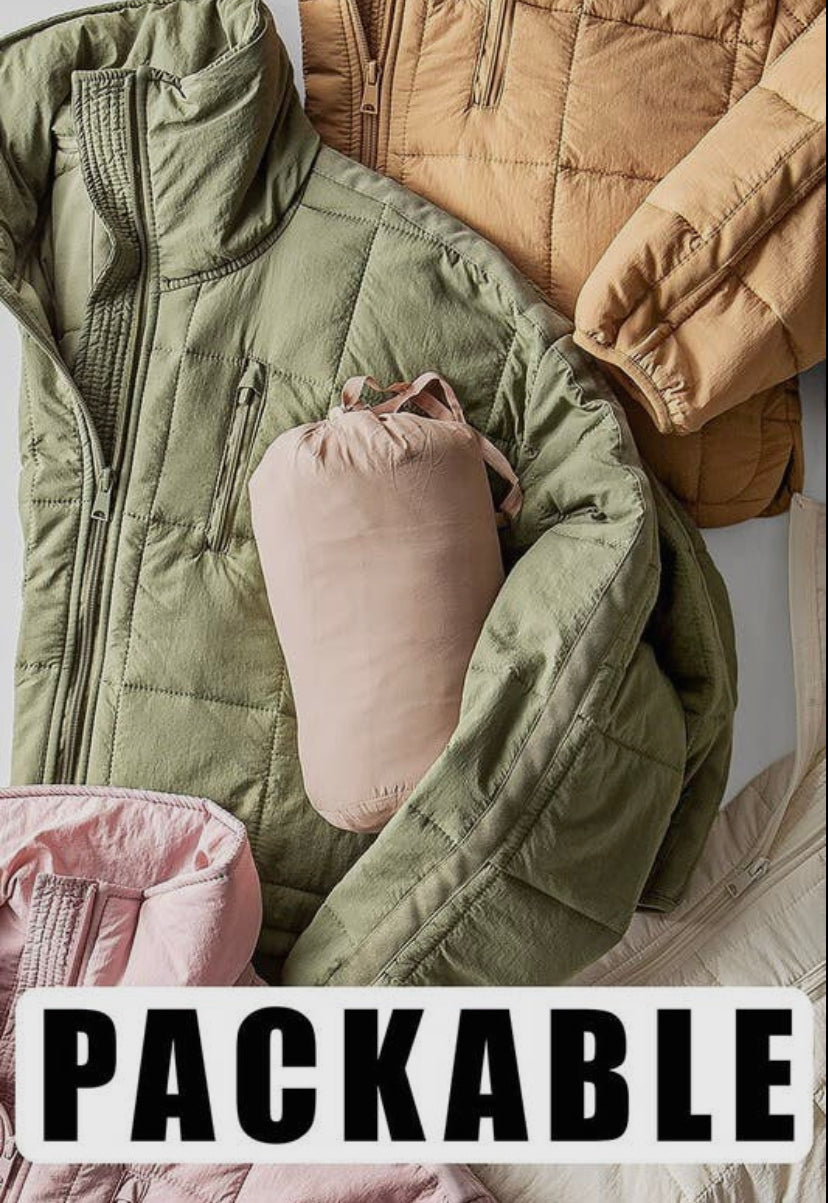Ultra lightweight quilted water resistant packable puffer cropped jacket