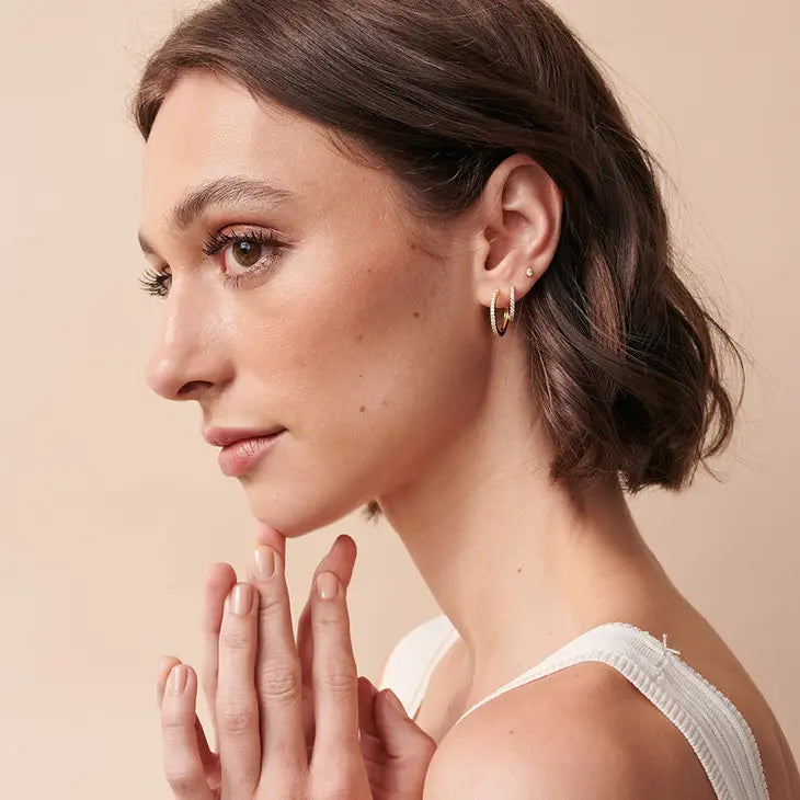 DESCRIPTION: The Rana Crystal Sleepers are a classic style with a row of crystals. Perfect to stack with your favourite gold sleepers or studs.