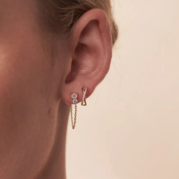 DESCRIPTION: The Renee Crystal Sleepers a fine style with cross over design. Perfect for stacking with your favorite hoops or studs.