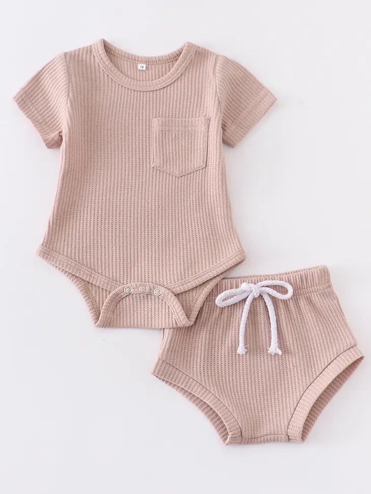 Ribbed Cotton Pocket Baby Set - 3 Colours