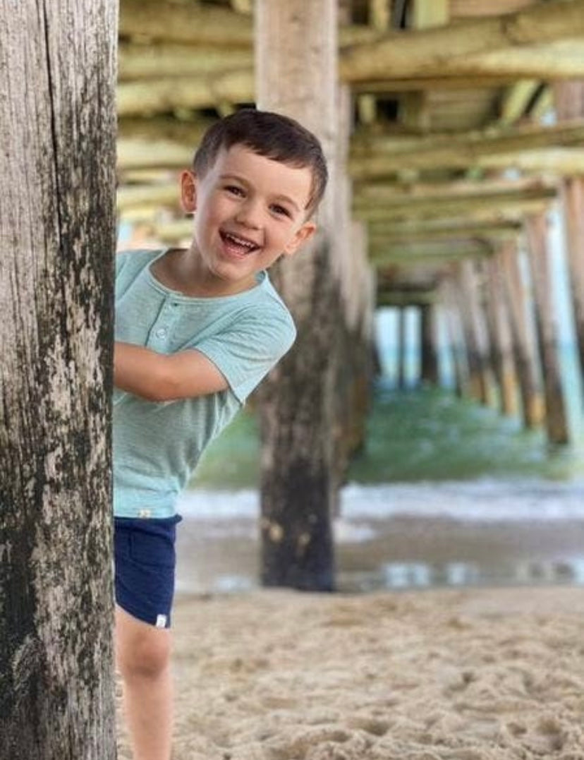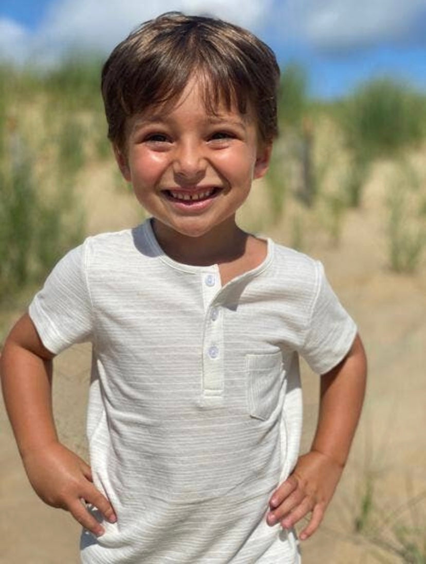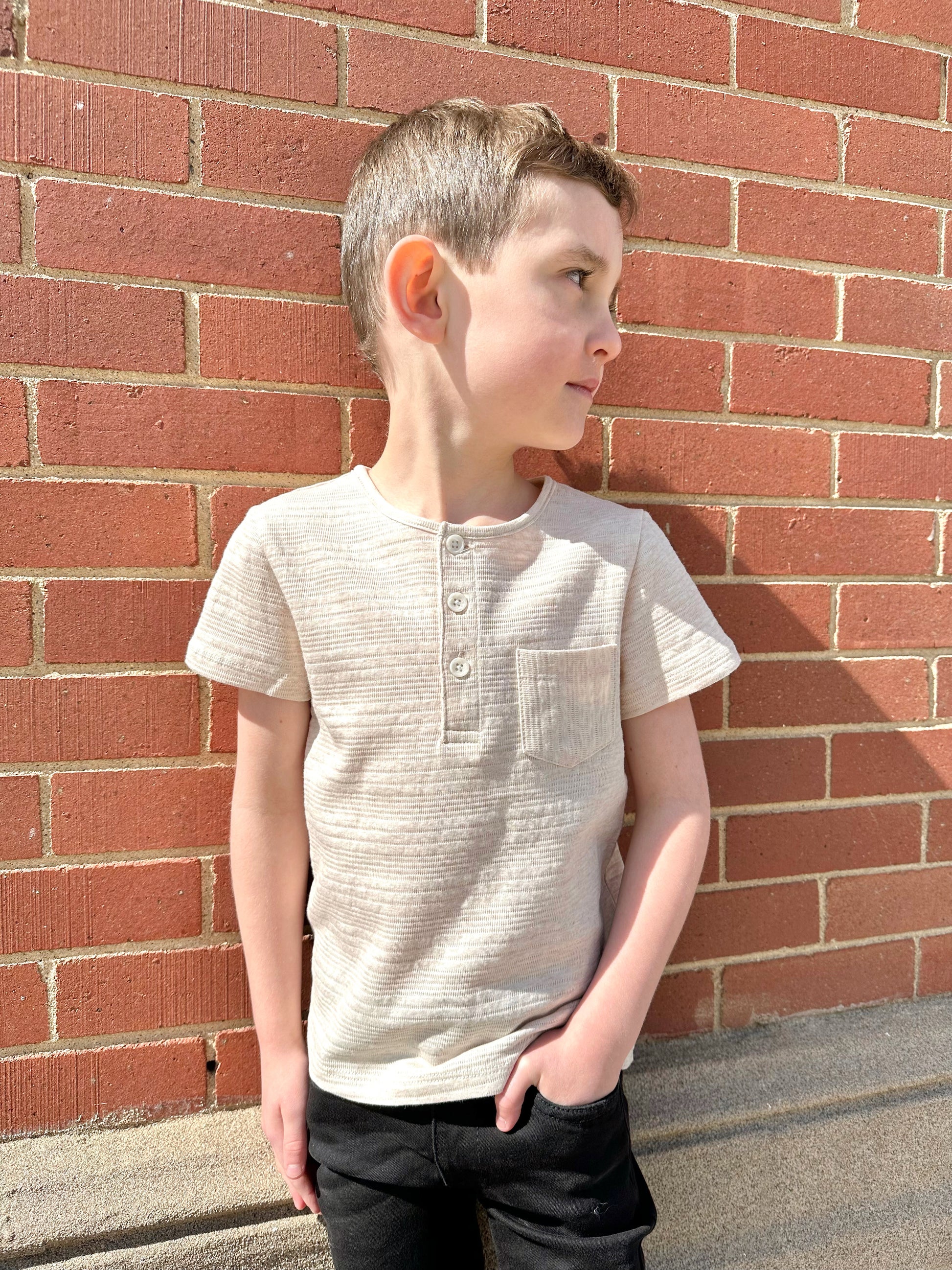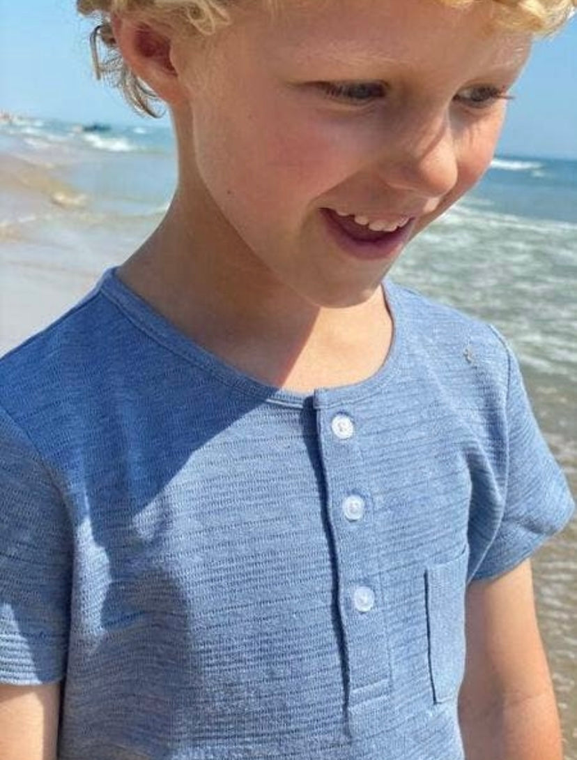 Short sleeve button henley with front pocket