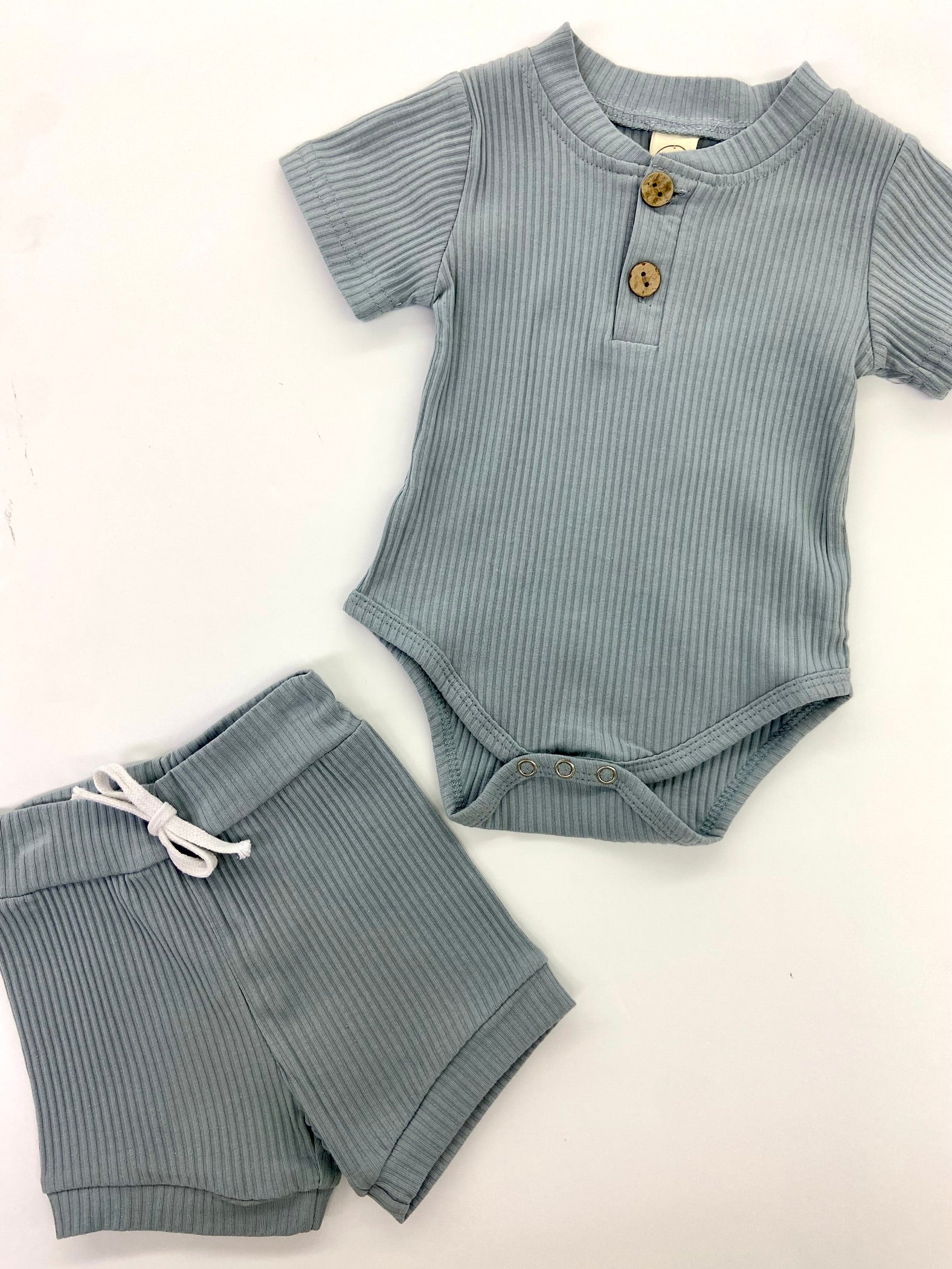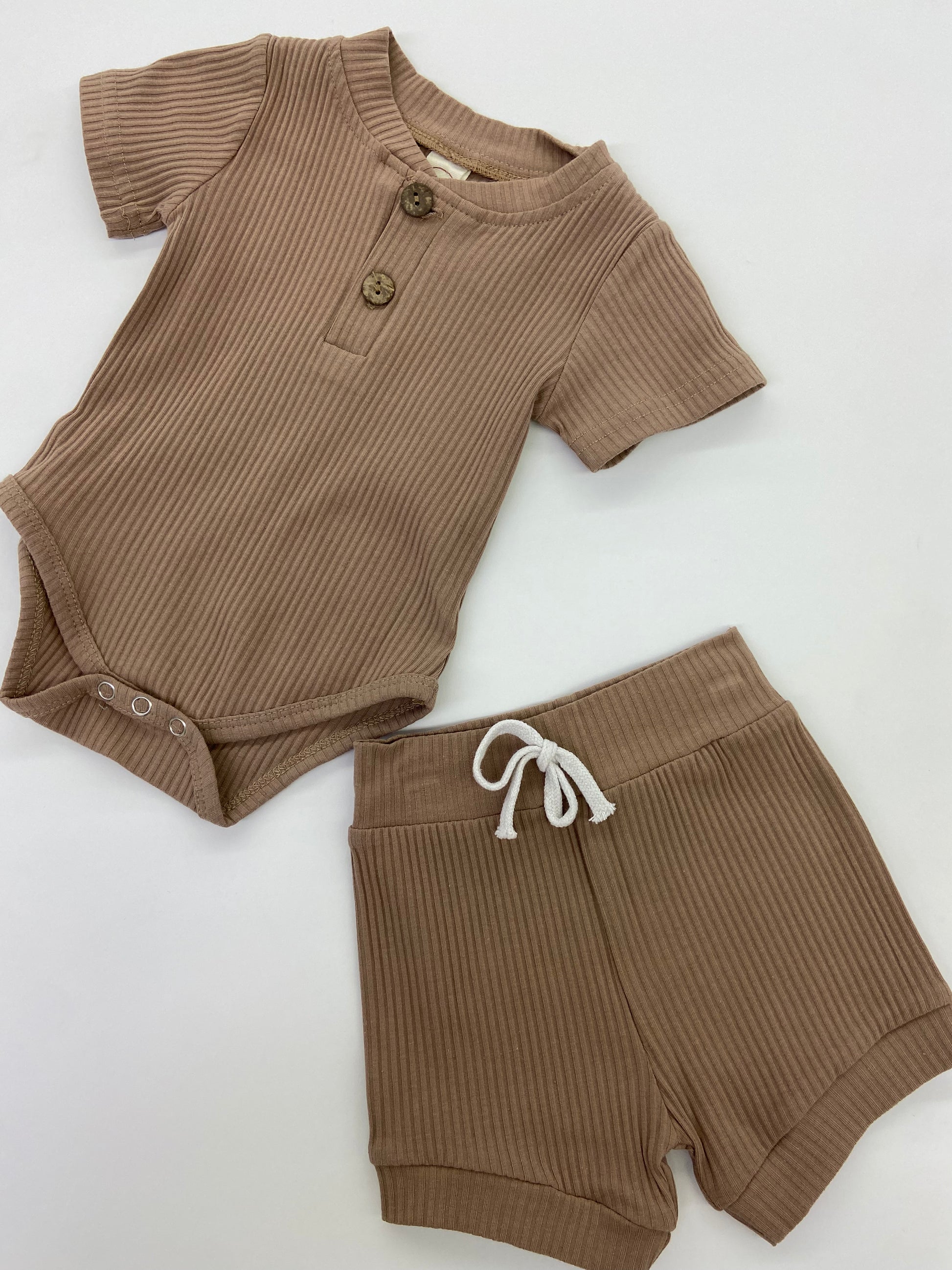 Ribbed Short Sleeve + Short Set | 2 Colour Options