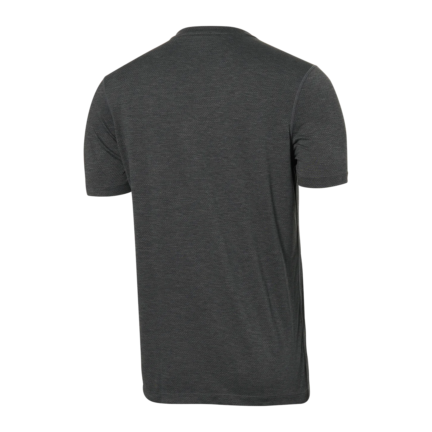 Built In Tech Three-D Fit™, Flat Out Seams™, UPF 25, hybrid raglan sleeve, underarm gusset.