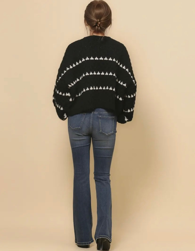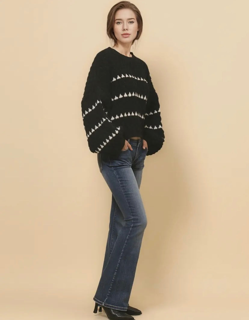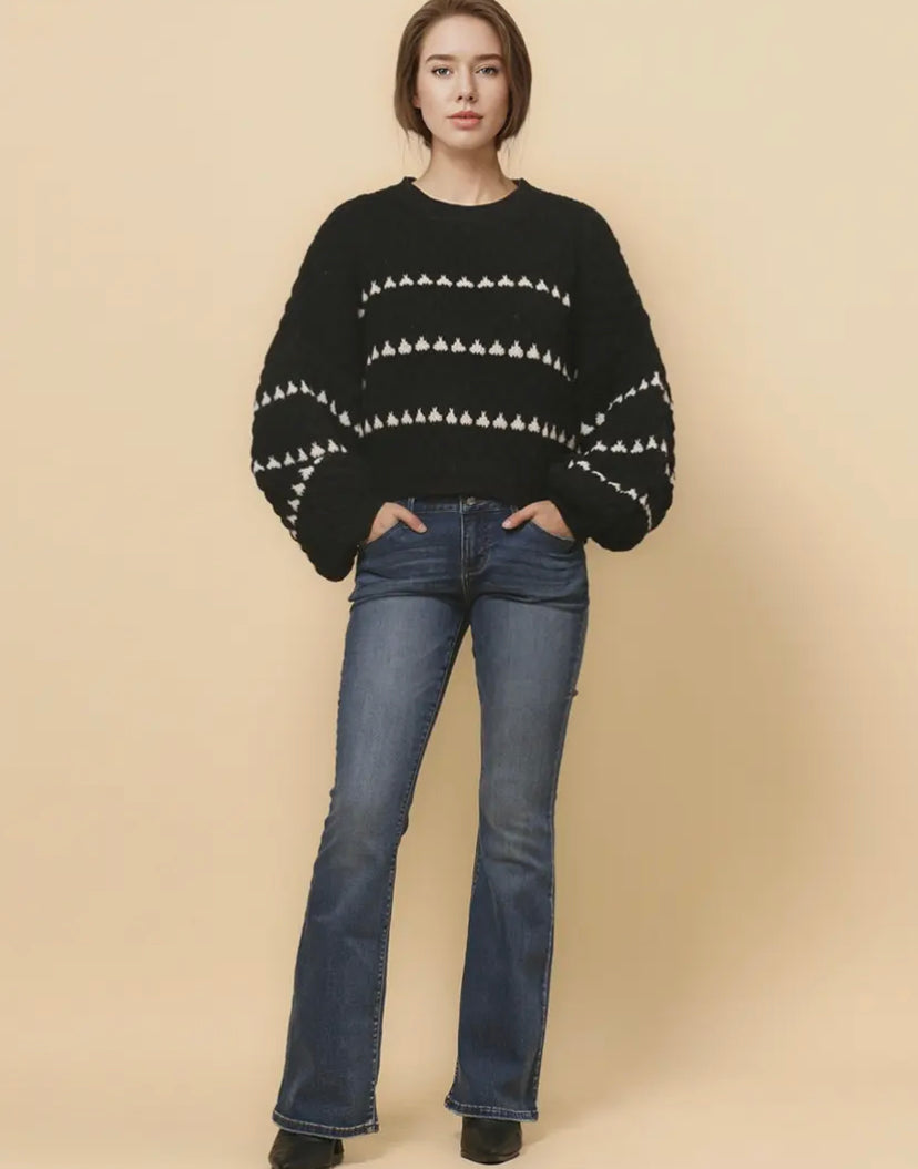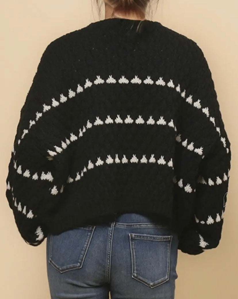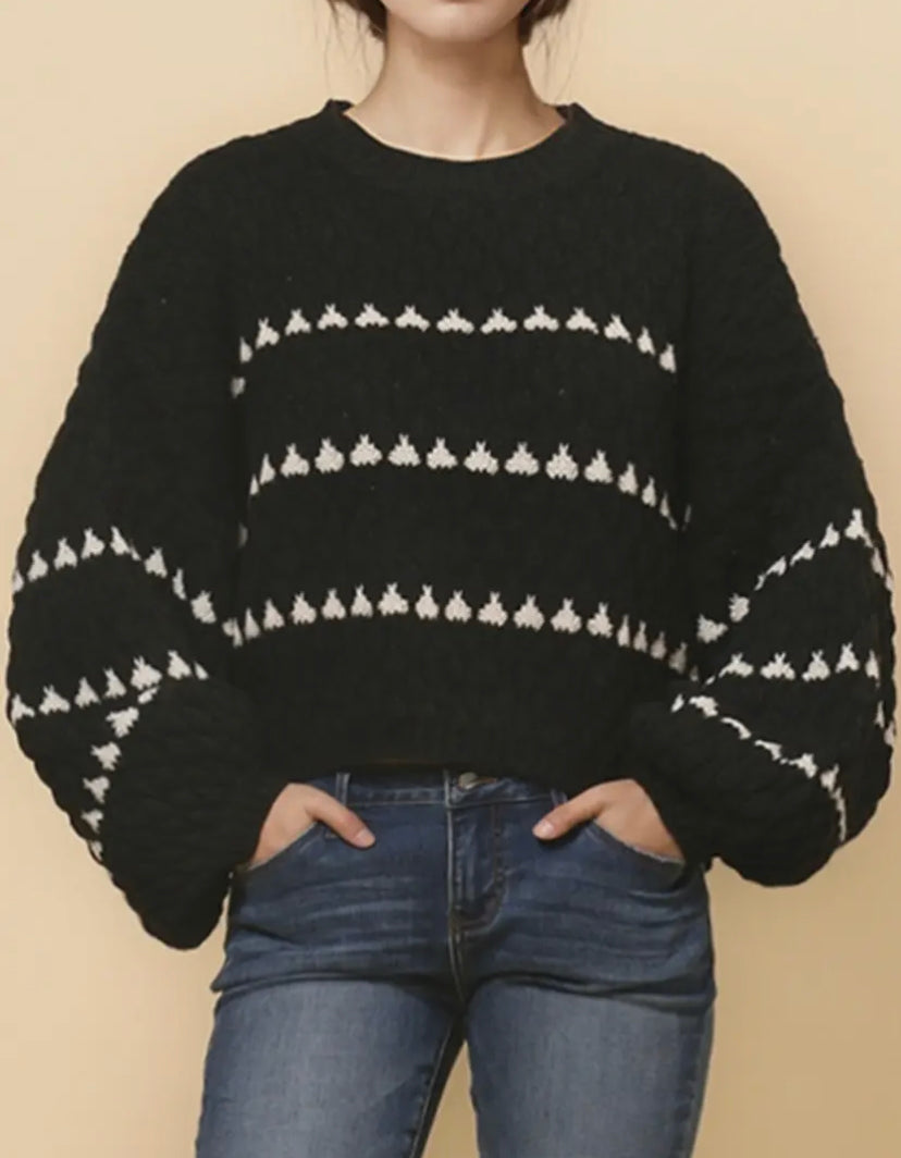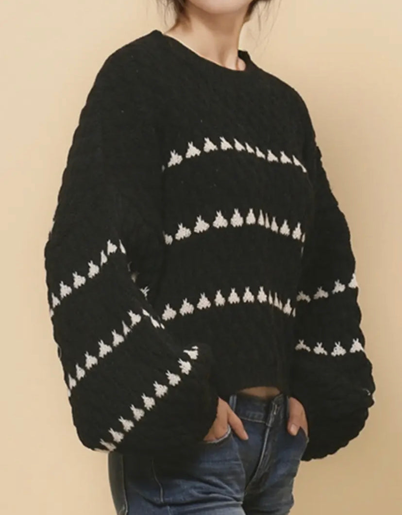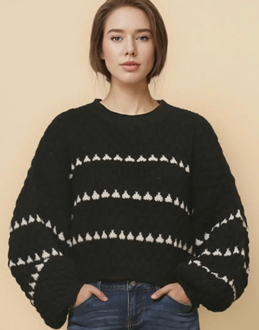 Features: * Ladies Sweater * 100% Polyester * Color Block * Long Sleeves * Lantern Sleeves * Round Neck * Heart Knit * Casual Fitting for Match Size *