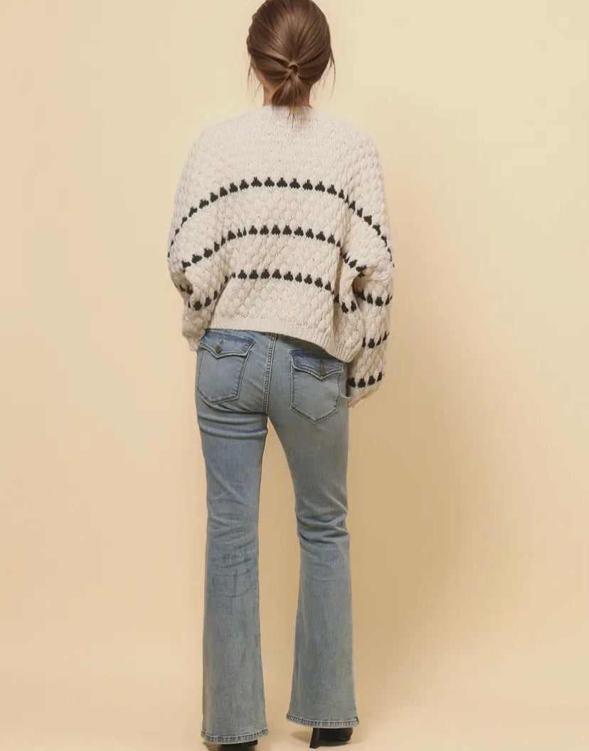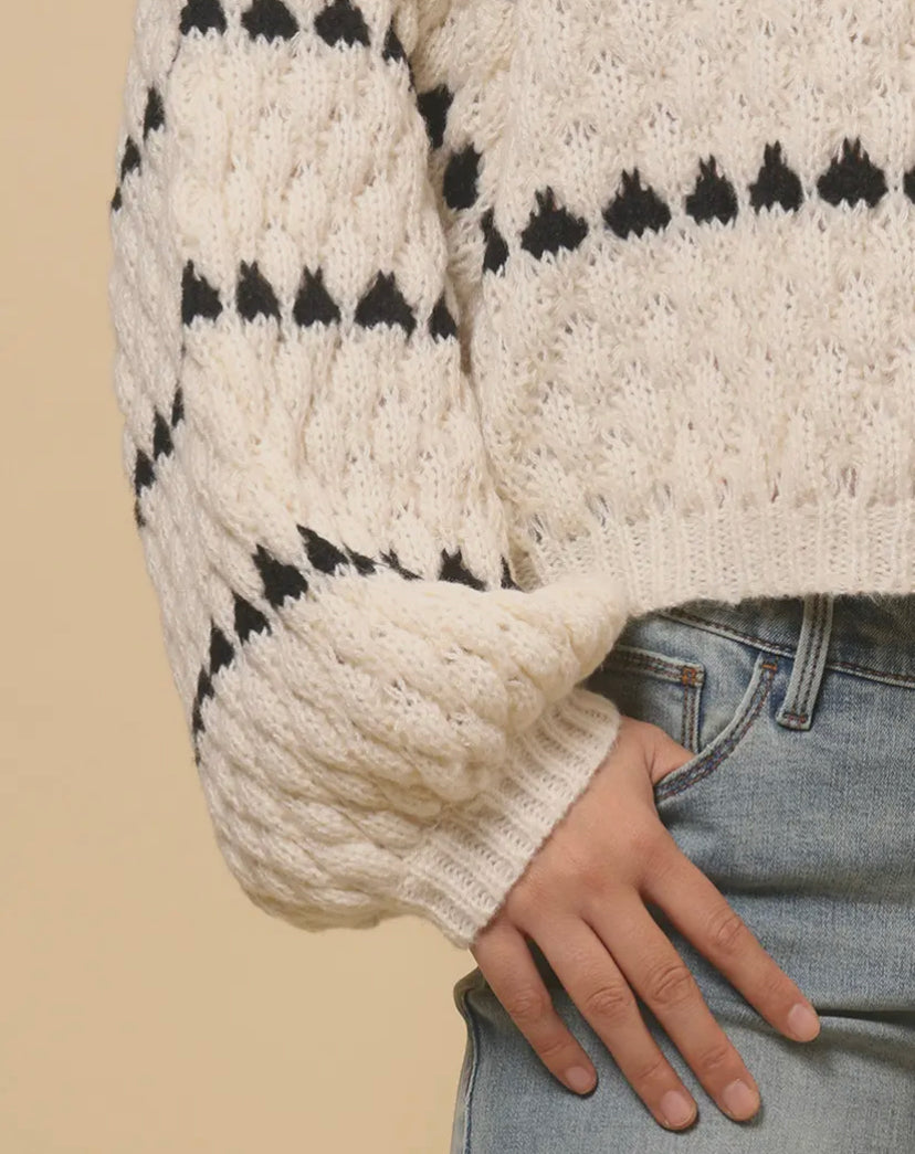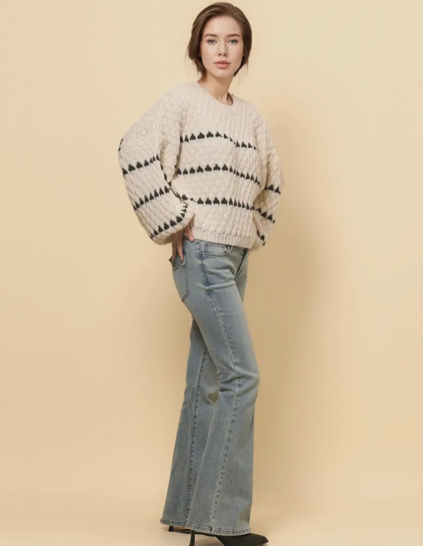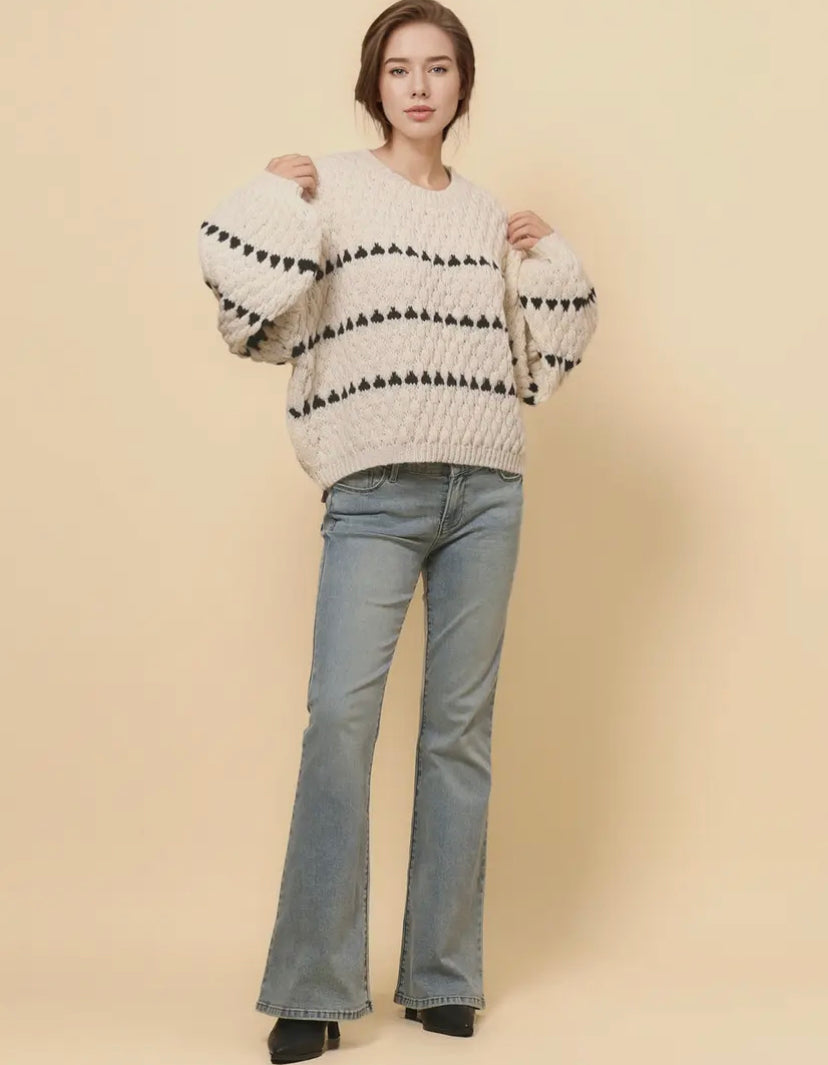 Features: * Ladies Sweater * 100% Polyester * Color Block * Long Sleeves * Lantern Sleeves * Round Neck * Heart Knit * Casual Fitting for Match Size *