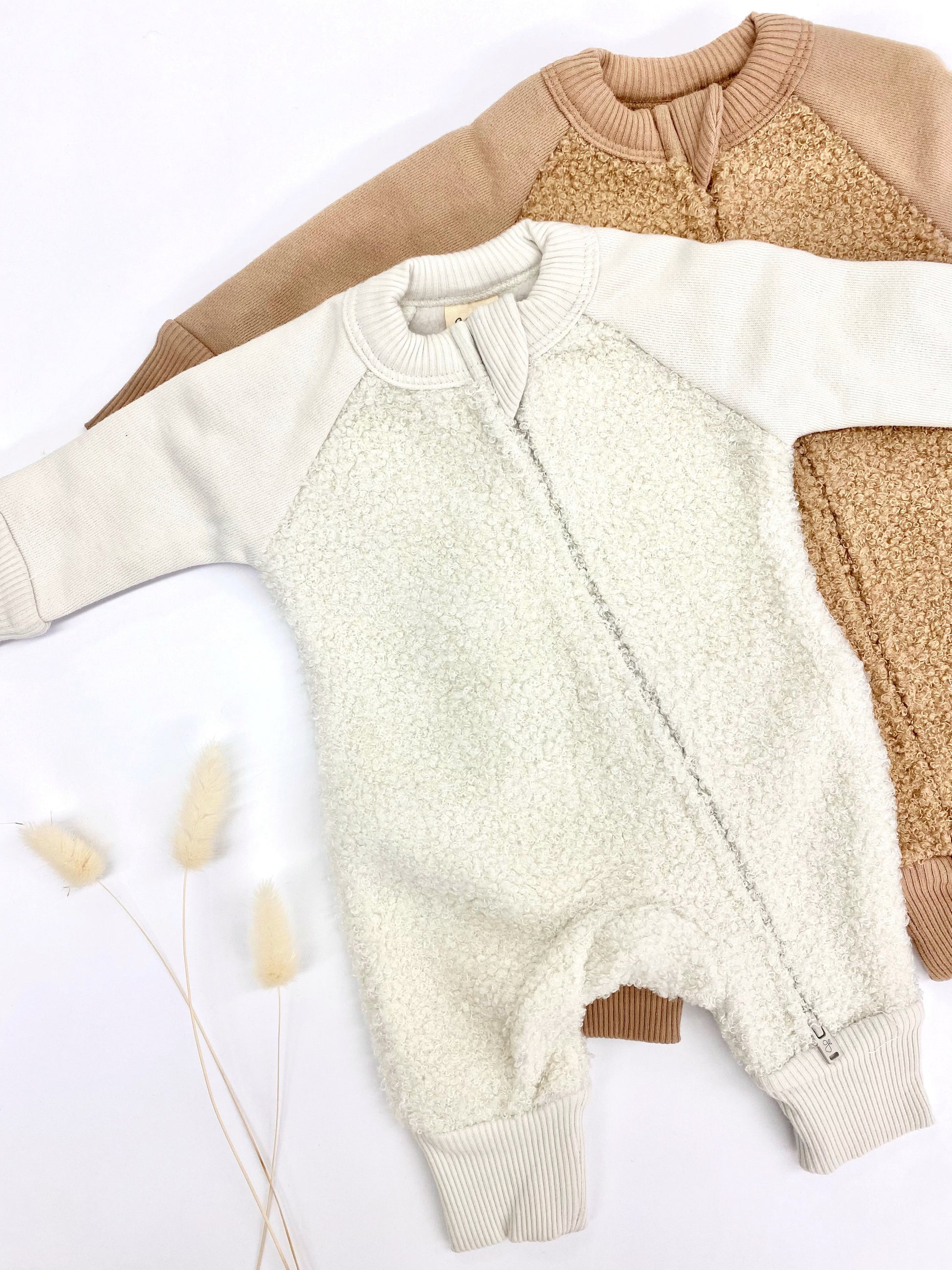 The one piece you won’t leave home without! Intentionally designed to keep your babe warm and cozy, while also giving them the freedom to play. With a two-way zipper for easy changes and a functional design that will keep up with your on-the-go babe! Made from our newest recycled sherpa and organic cotton fabric.