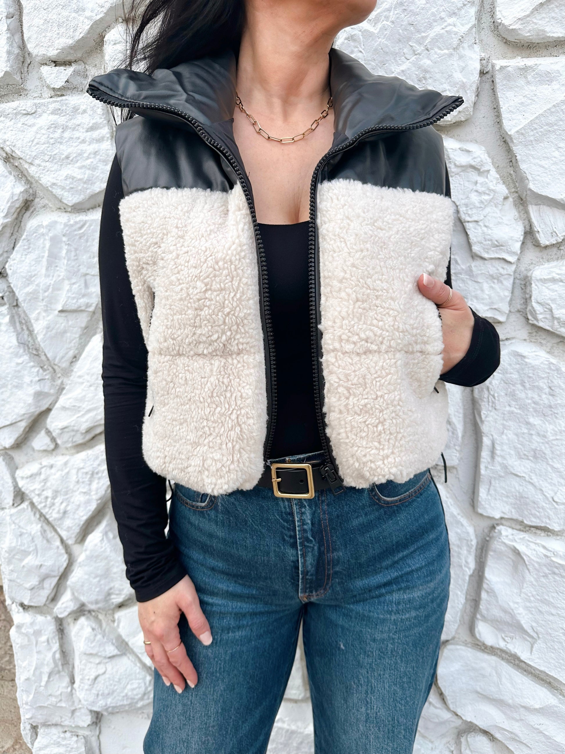 Staten Sherpa Puffer Vest | Cream