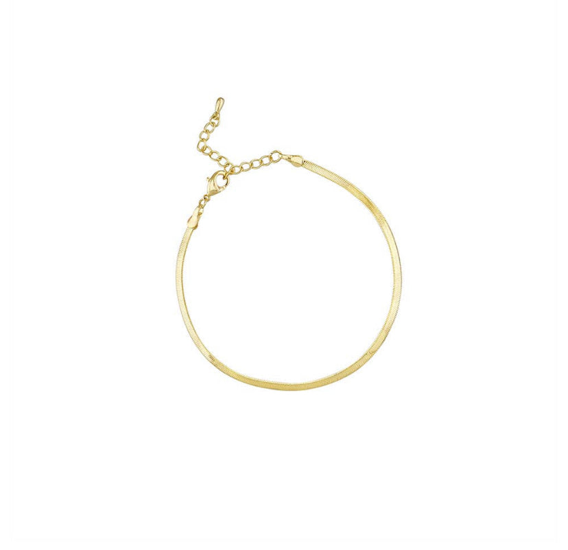 The Snake Chain Bracelet is a light weight flat chain, great to layer with other chains to create an elevated look or wear on its own for simple elegance.