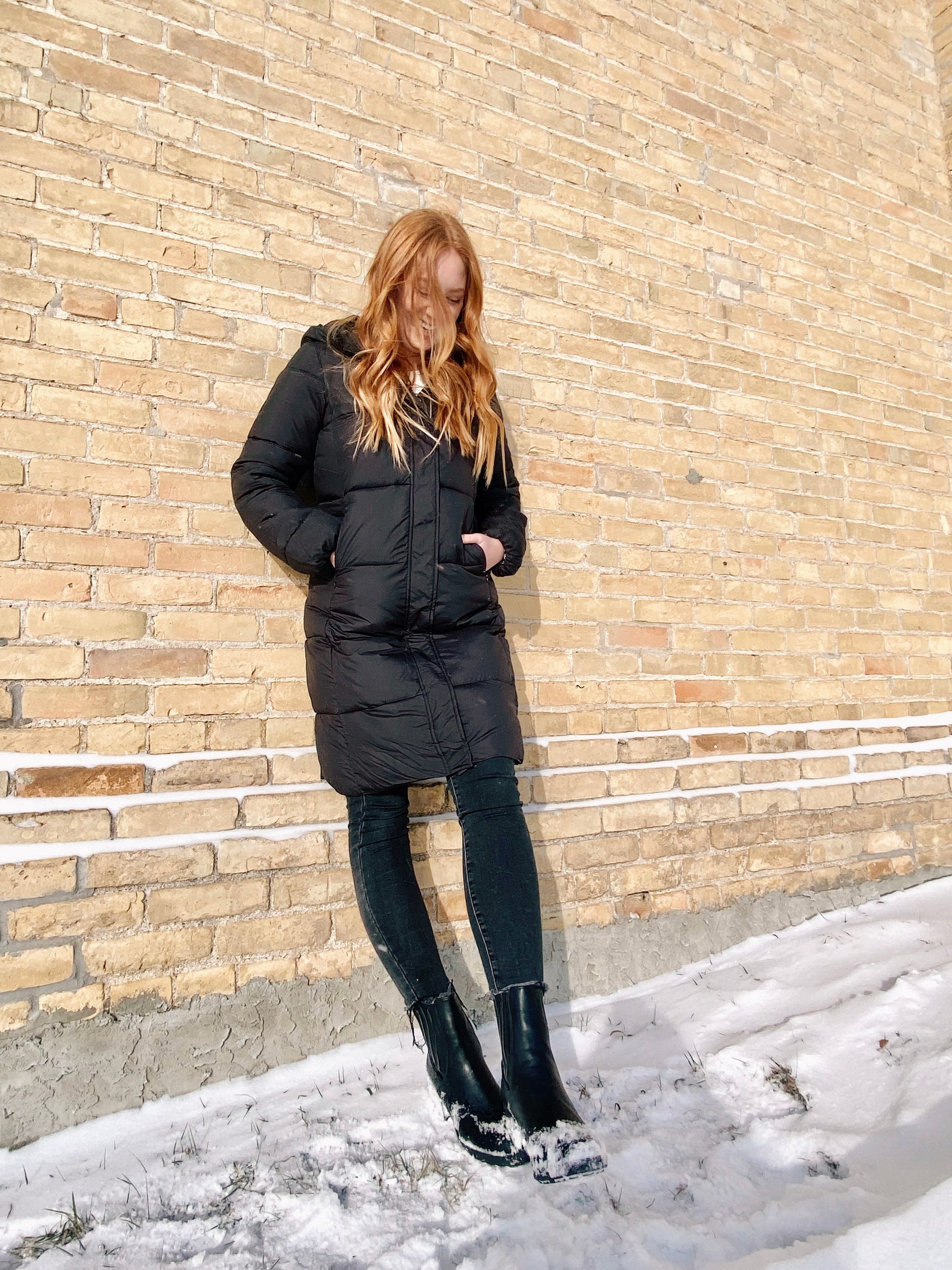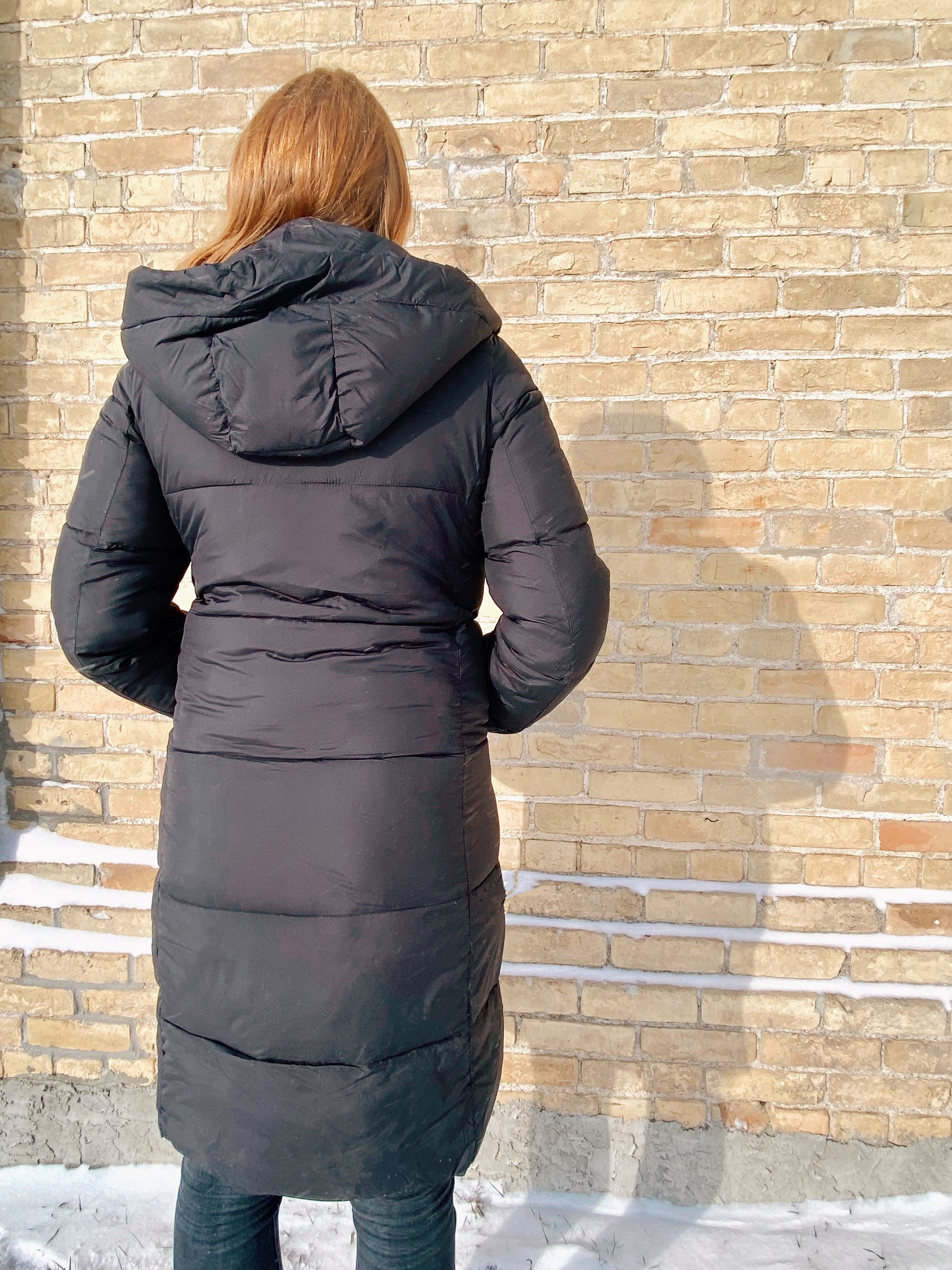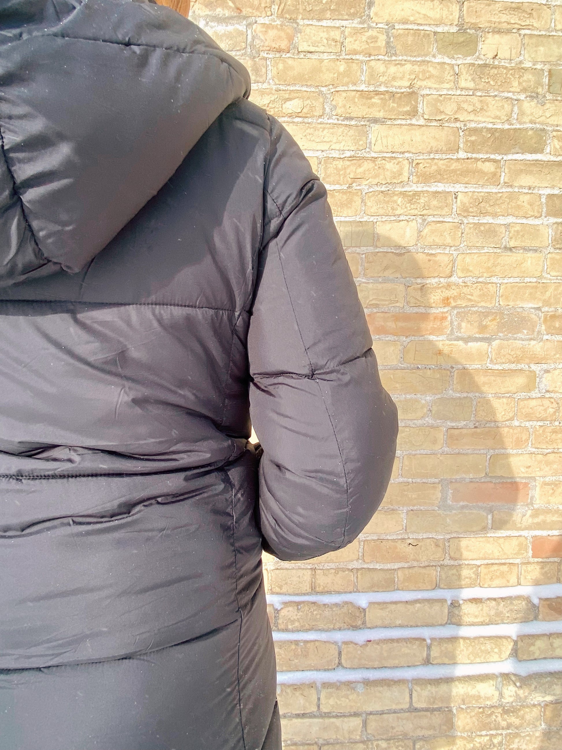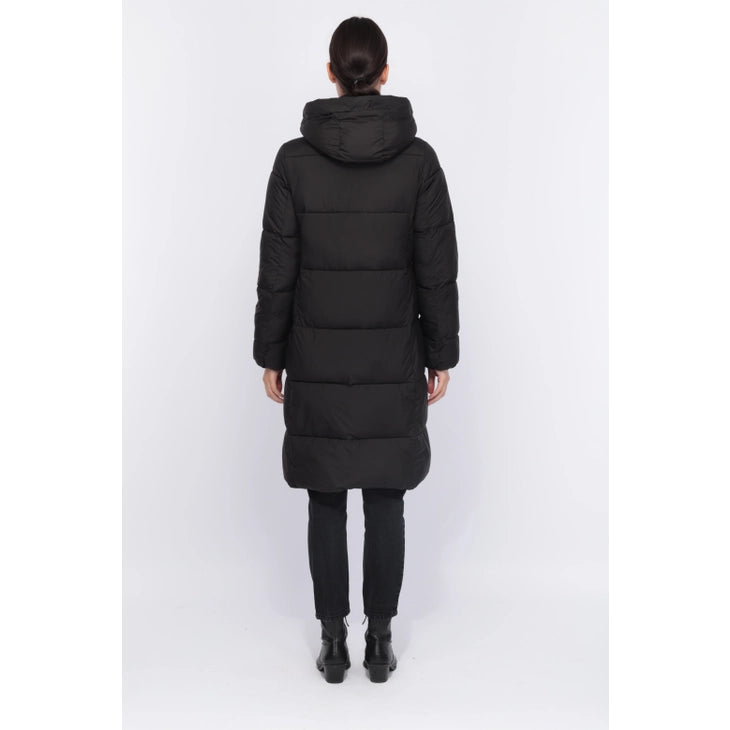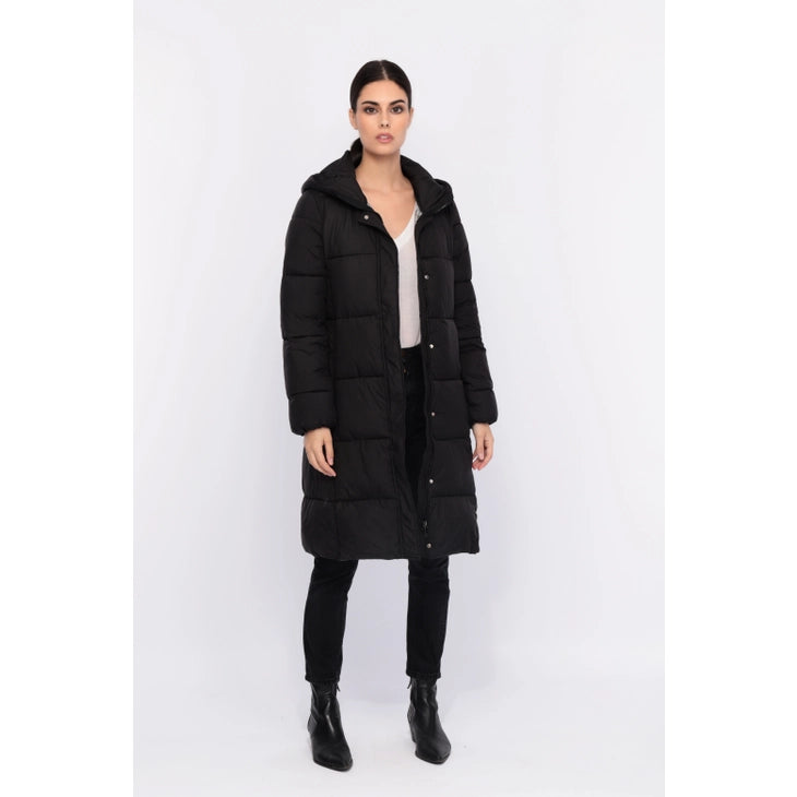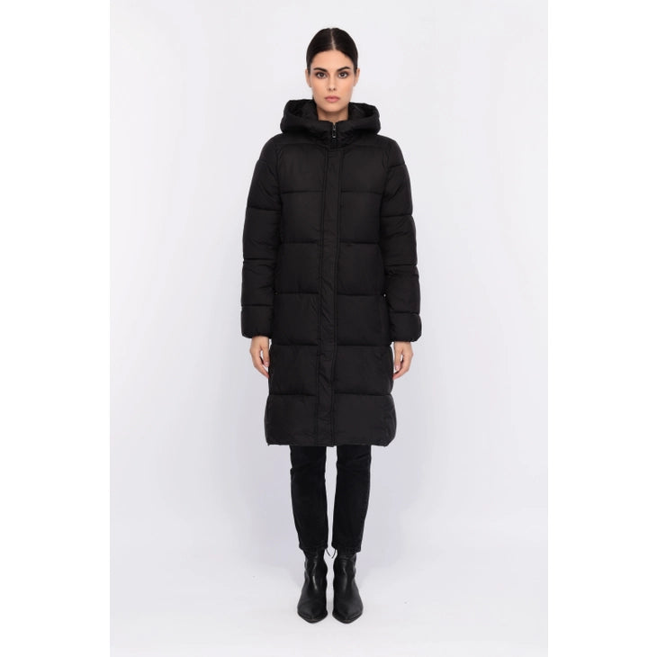 Women's down jacket with hood. High collar and padding in polyester cotton