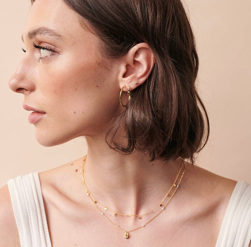 The Cielo Studs are a small stud style featuring Cubic Zirconia crystals. Wear on their own for a simple everyday look or wear layered to compliment your favorite earrings. MATERIALS AND DIMENSIONS: - Sterling Silver 925 base with extra thick 18k 1 micron gold plating - Cubic Zirconia - Width 0.4 cm