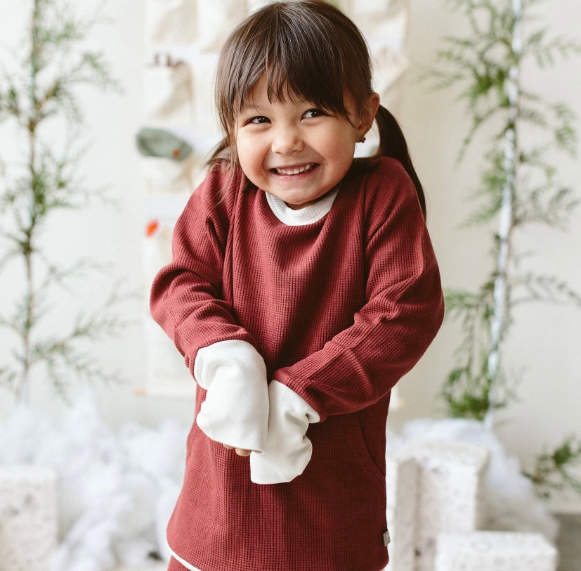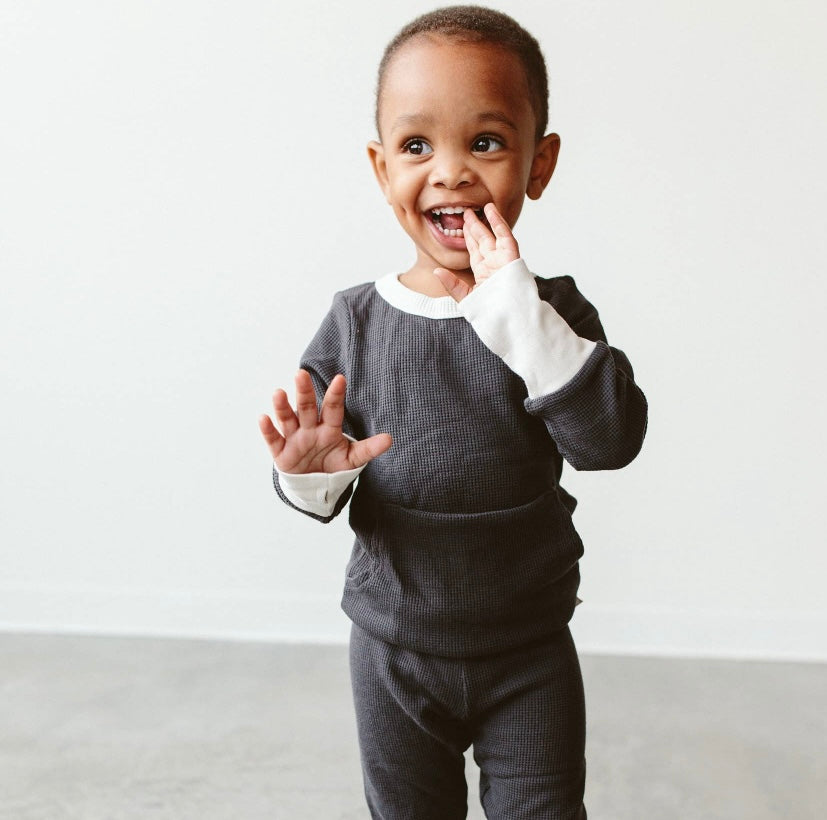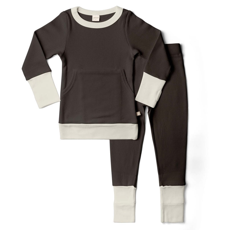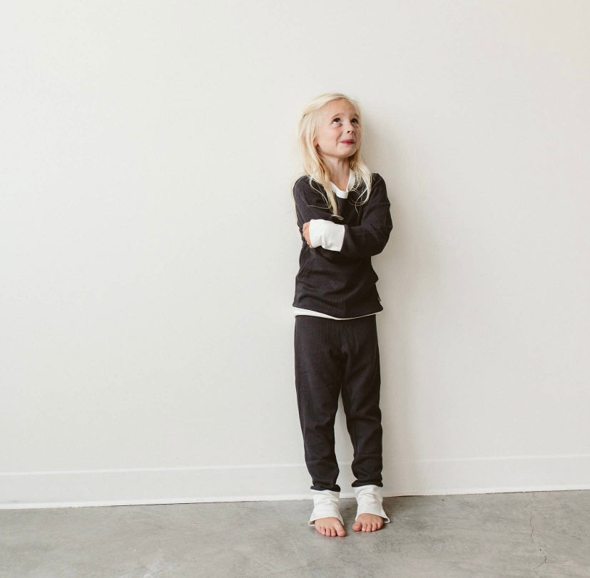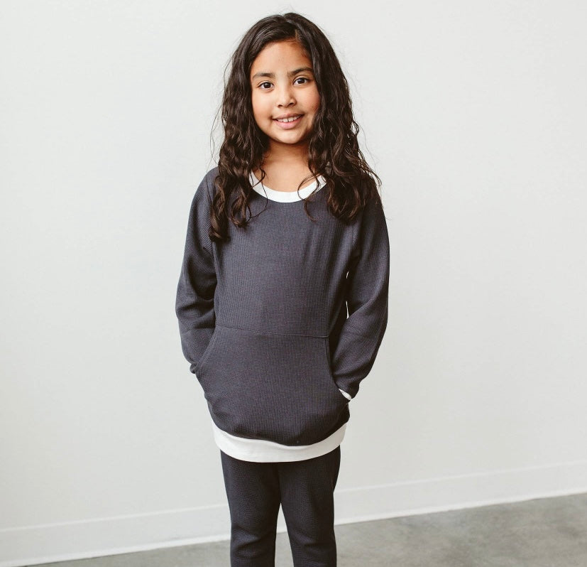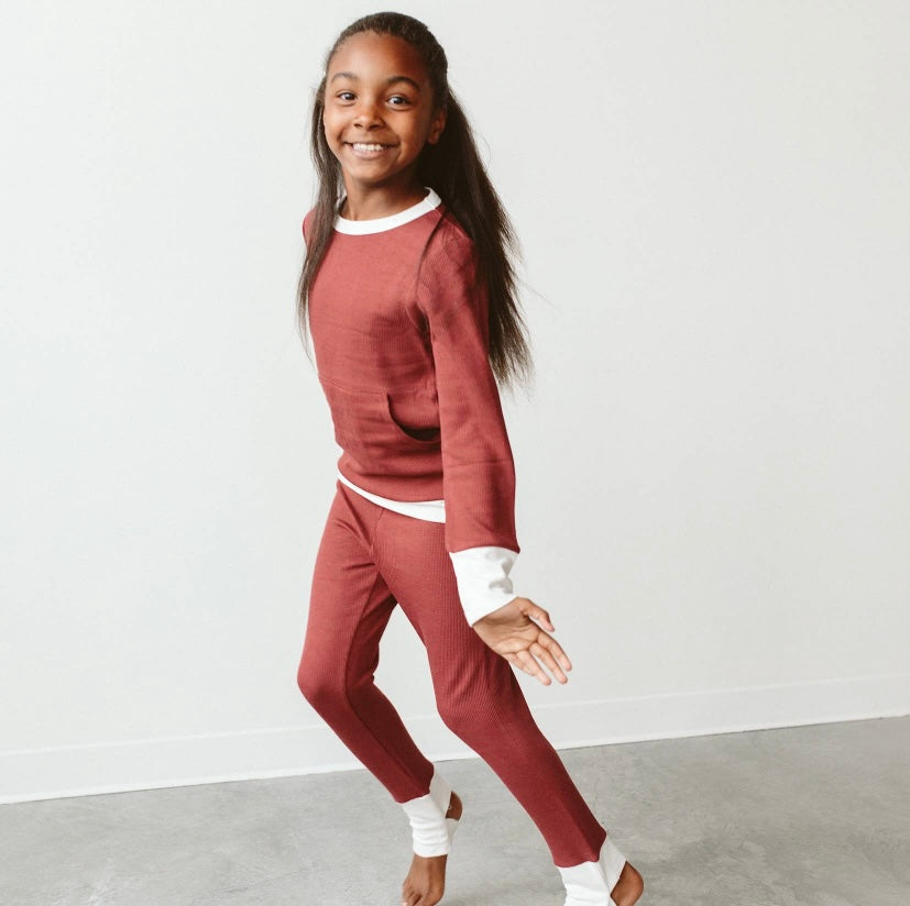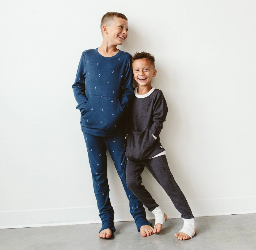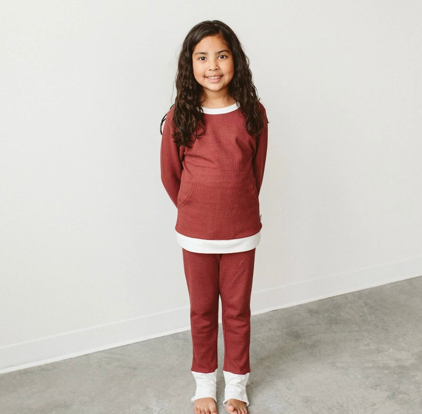 Our newest loungewear separates for sizes up to size 12 in our signature organic super-soft fabric. Features peekaboo heels, thumb holes, and a front pocket for their favorite stuffed lovey.