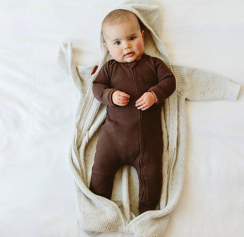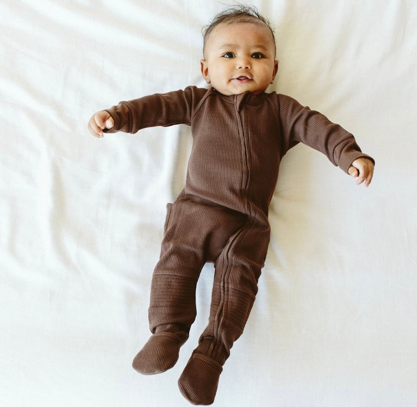 A thoughtfully-designed, thermal organic footie that is versatile, breathable, and SUPER soft. Features two-way zipper for easy diaper changes, a cute bum flap for a quick diaper check, and option for open toes when baby is mobile.