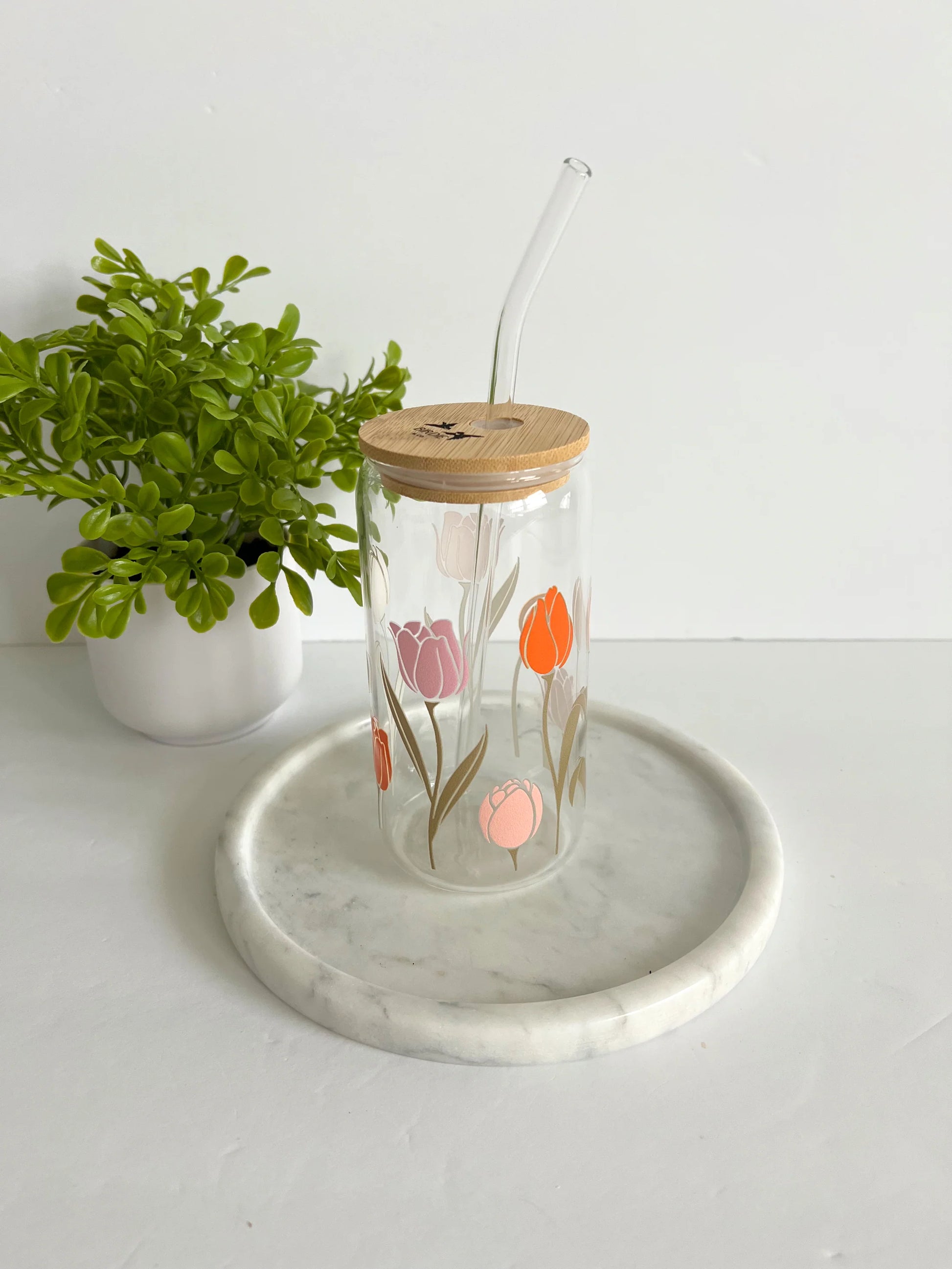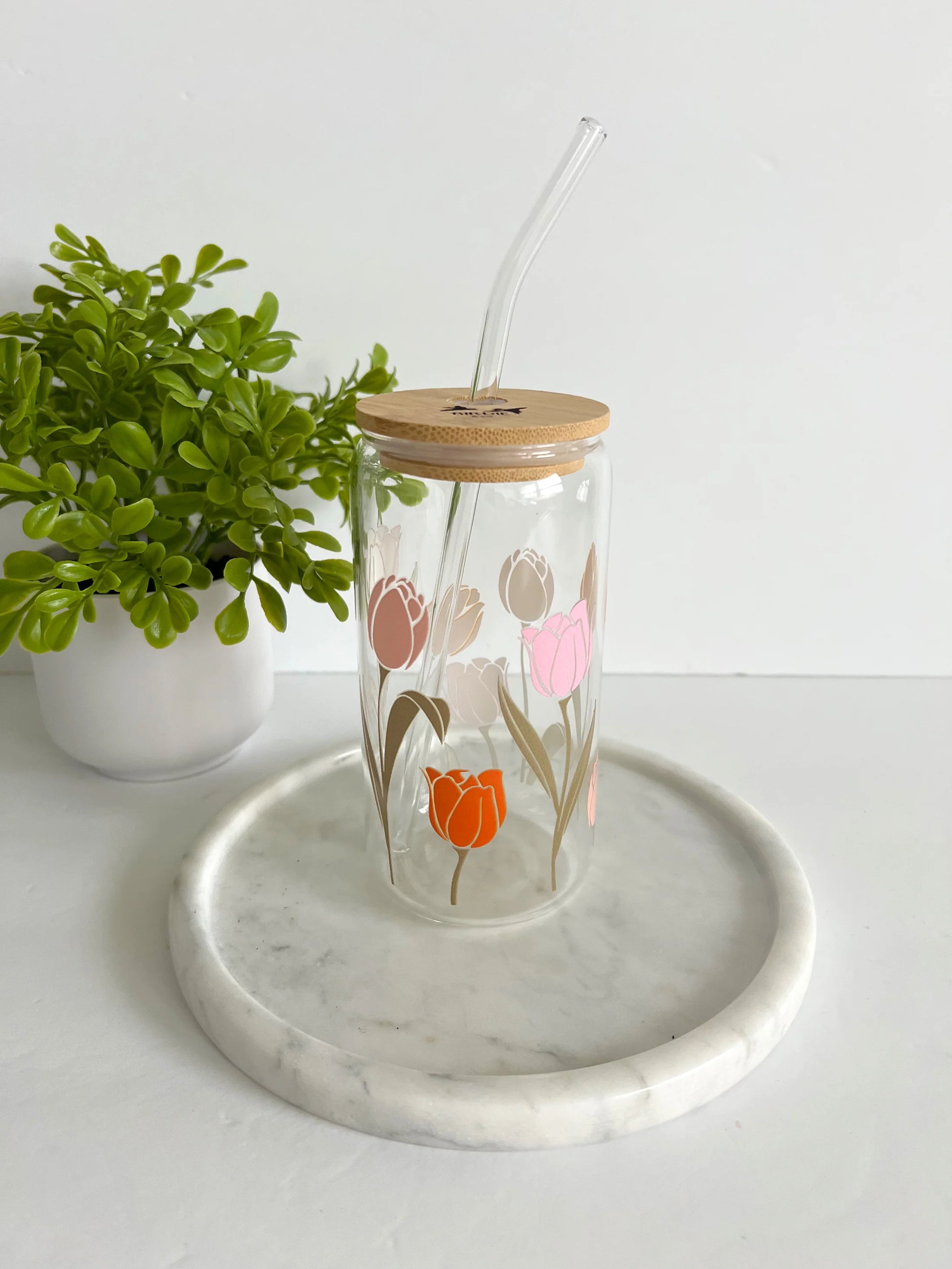 Experience the beauty of spring with our Tulip Can Glass. Vibrant colors and a tulip design make this glass perfect for sipping your favorite drink this spring!