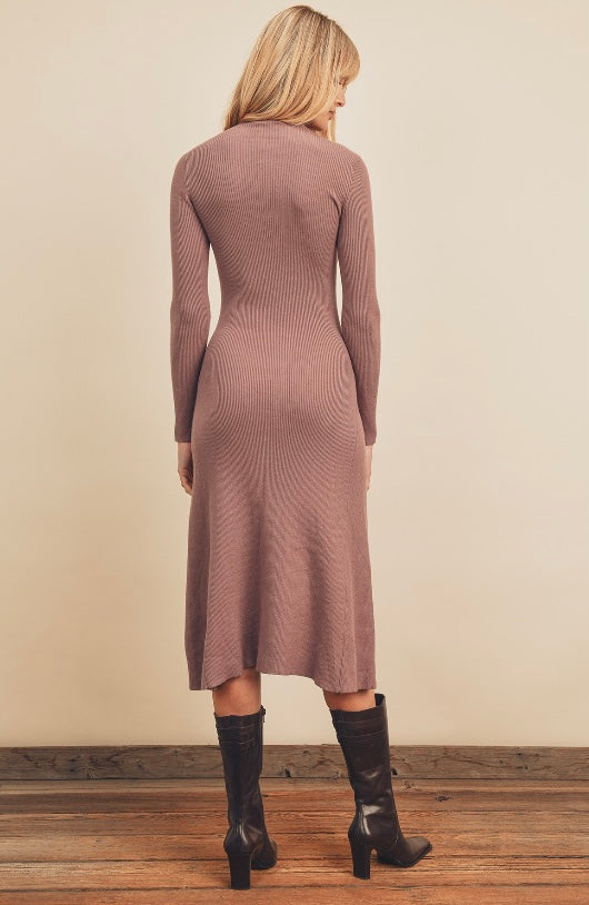 Turtleneck Flared Midi Dress