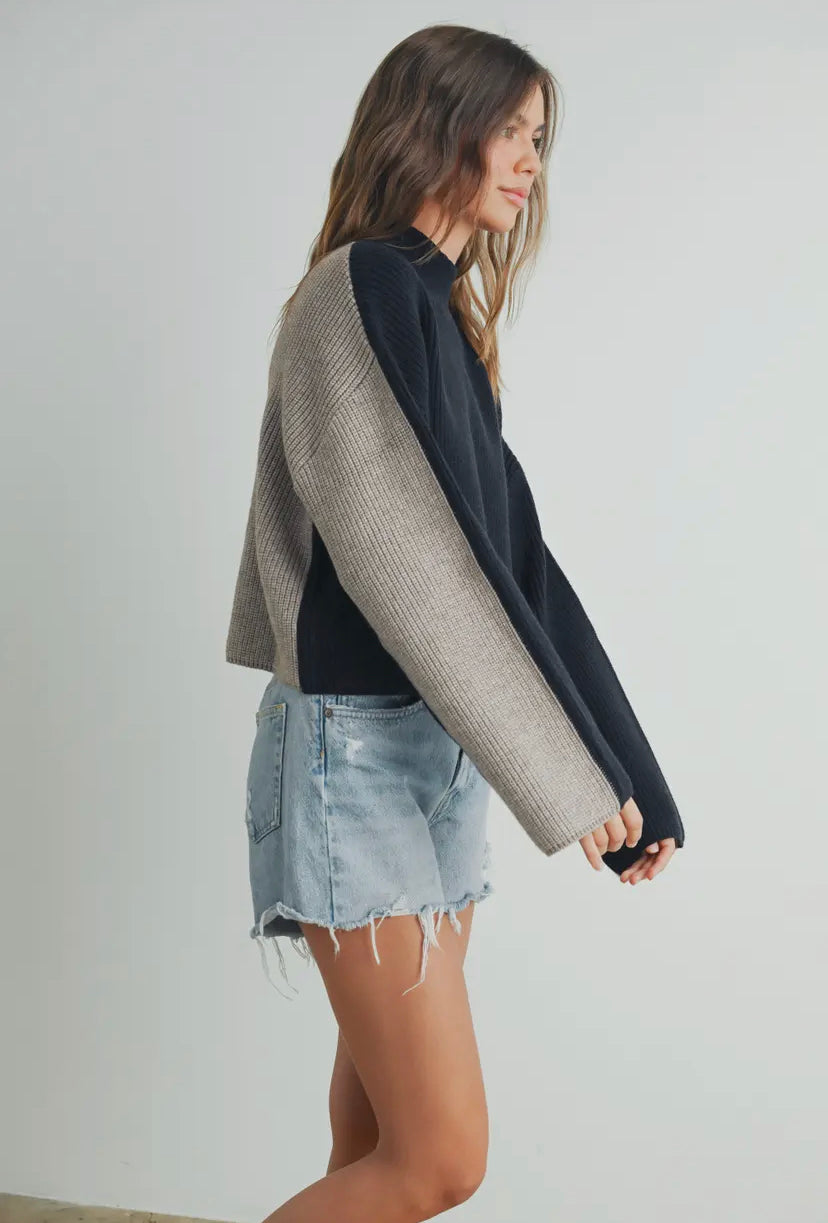 Stay cozy and stylish with our Two-Toned Turtleneck Sweater. This chic piece features a classic turtleneck design with a modern twist, showcasing two complementary colors that create a striking contrast. Made from soft, high-quality fabric, this sweater offers both warmth and comfort, perfect for layering or wearing on its own. The relaxed fit and versatile style make it an ideal choice for any occasion, whether you're dressing up for a night out or keeping it casual for a day at the office. Elevate your wardrobe with this timeless yet contemporary sweater.
