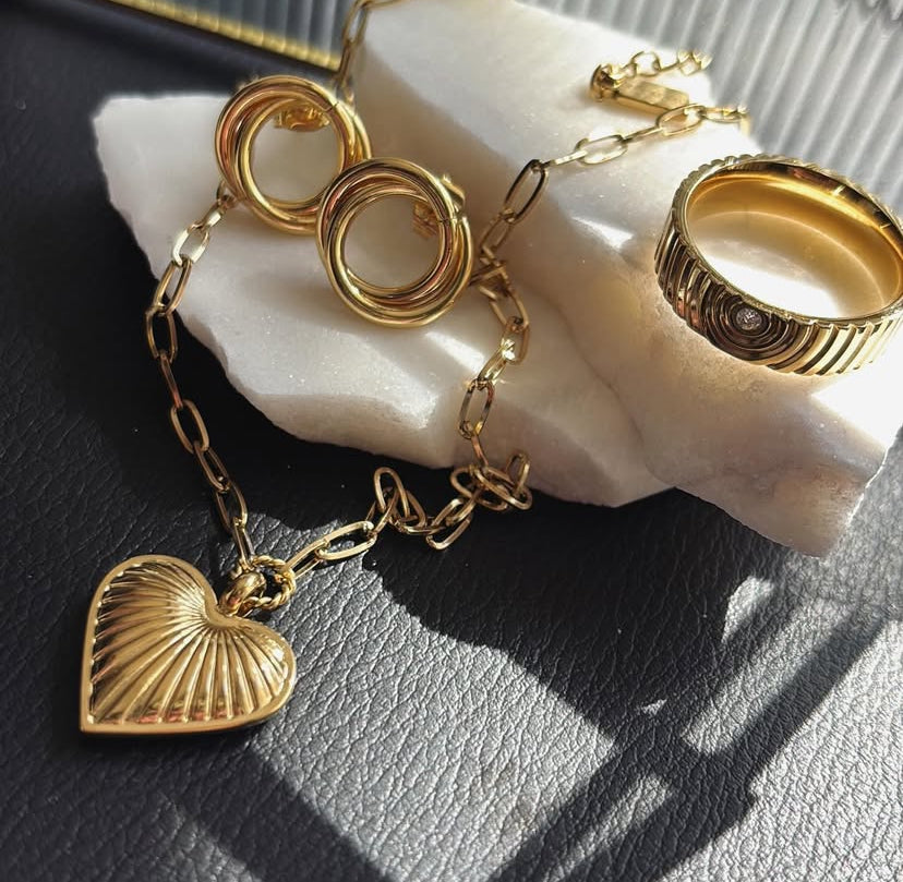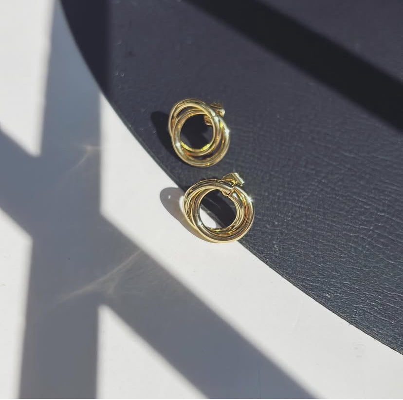 A radiant twist of gold, inspired by light and movement. Waterproof, 18k gold-plated, and made to glow with you.