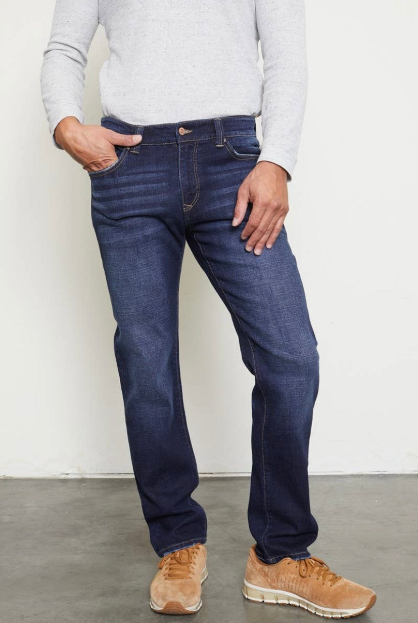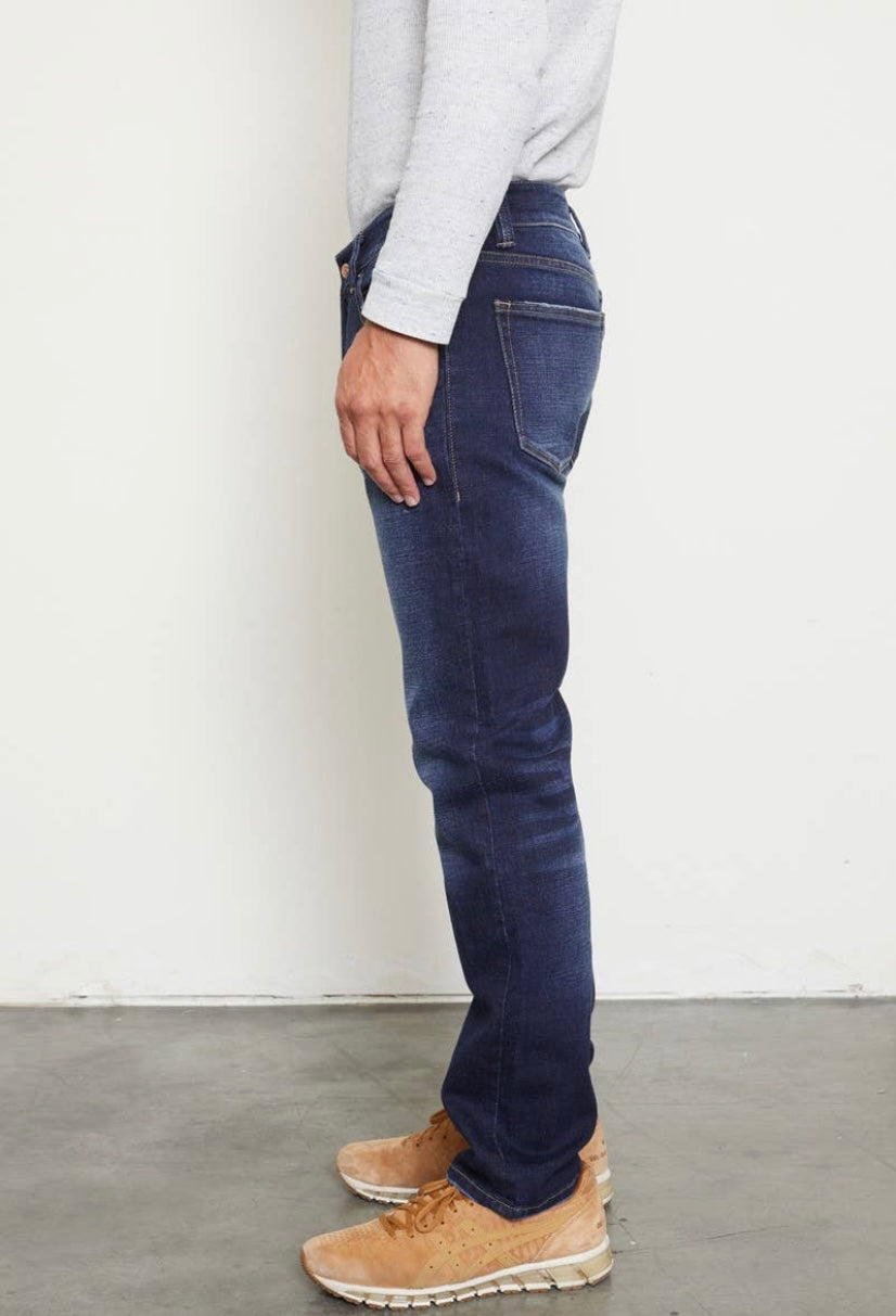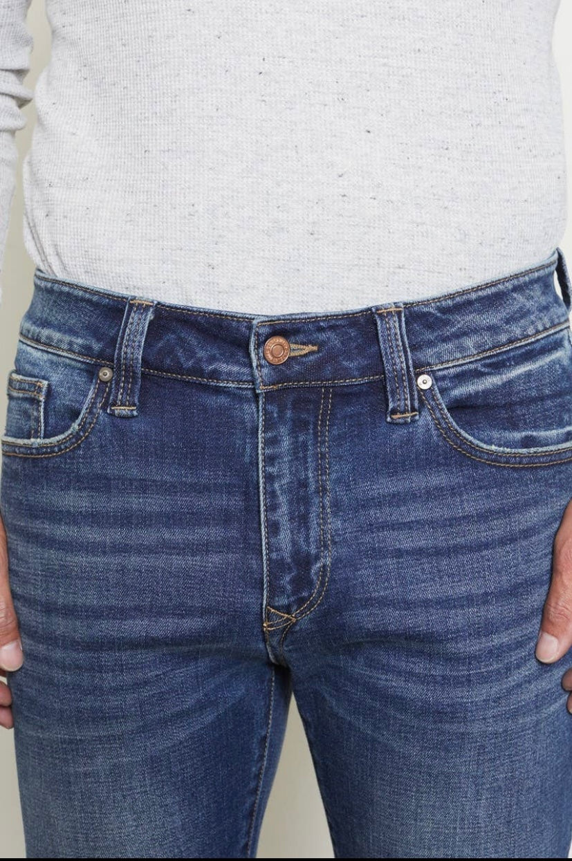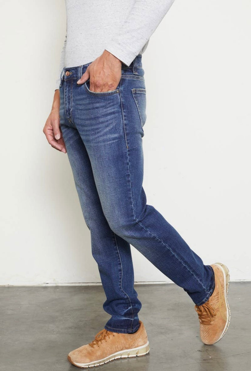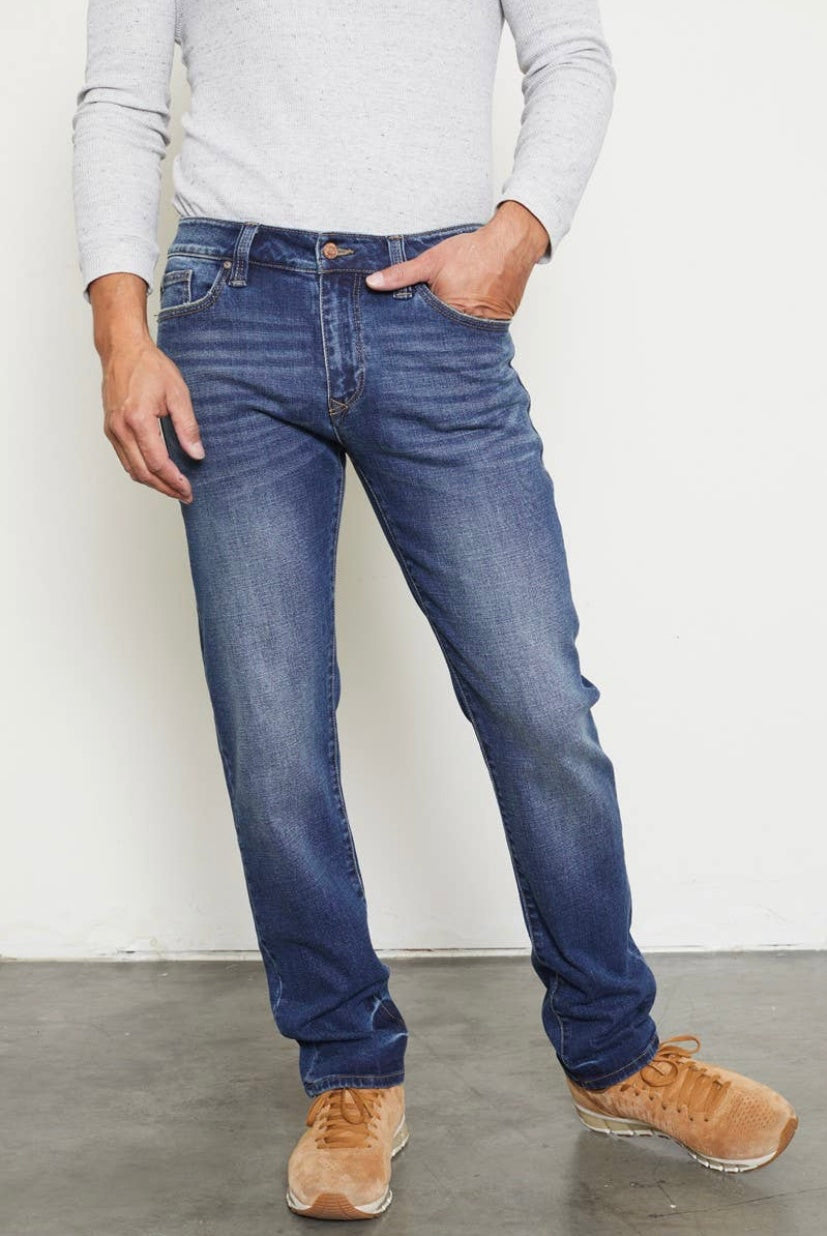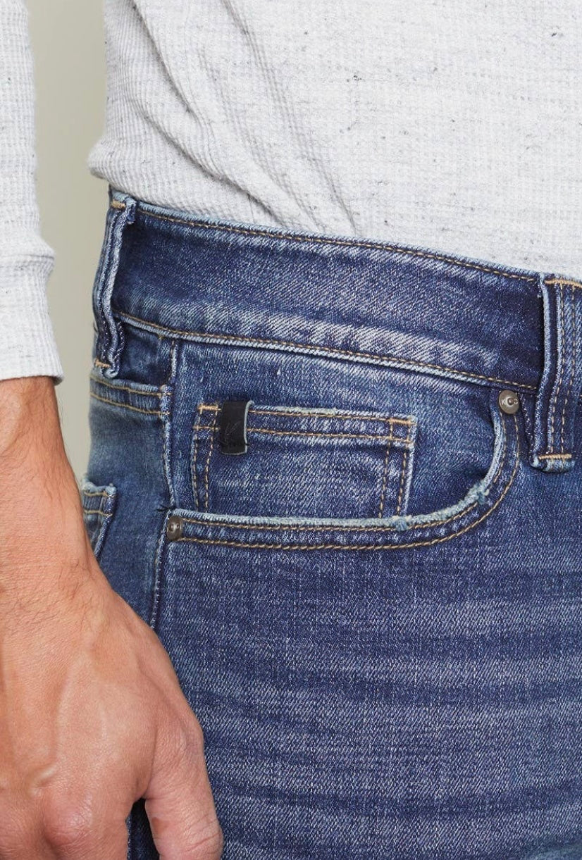 Reg. Real 5 pocket slim straight jean Men / slim straight / medium stone wash Men medium wash with whisker detail jean