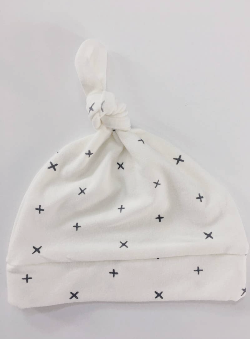 X + Knotted Baby Hat Cream/Grey -Newborn